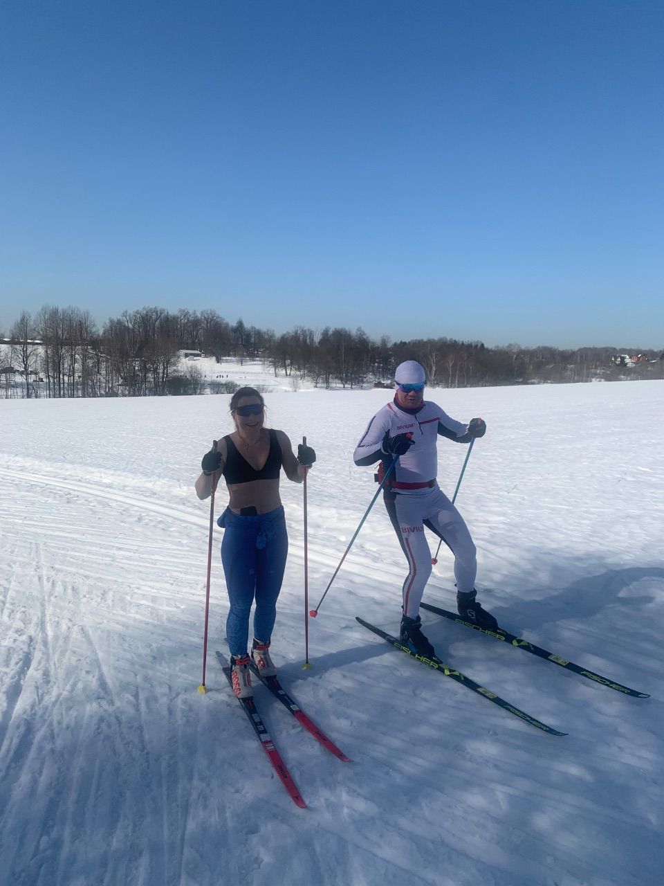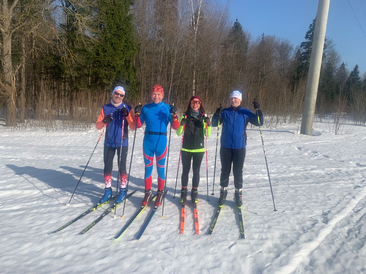 Сегодня с 9:45 вышел на трассу. Лесная часть довольно грязная, особенно после 1 моста на подьеме после поворота на 3 км. Показал группе лыжников Митропольское поле, с утра просто супер по насту. Далее катался по 3 полю. Очень много лыжников, которые целыми семьями катаются. На поле шикарные виды. Около 12:30 вышел ратрак для подготовки 2 км лесного круга и полей.