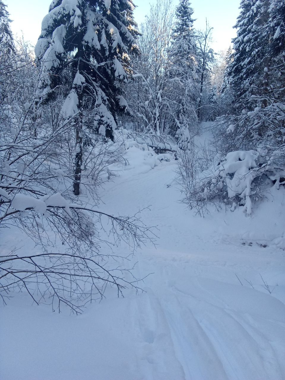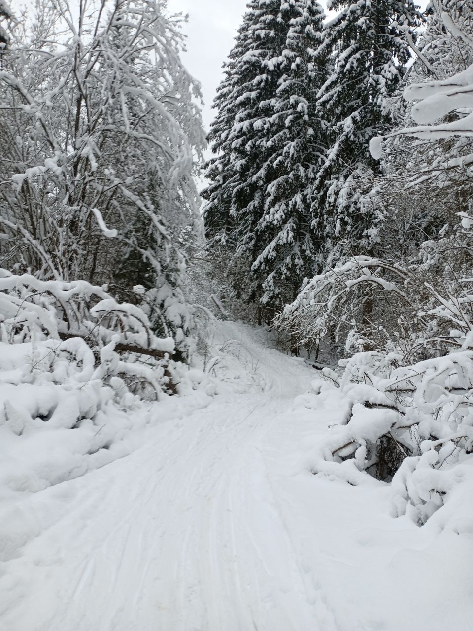 Однако, хорошие лыжи лучше пока оставить дома. Местами земля, лёд и поваленные деревья попадаются. Нужен снег.