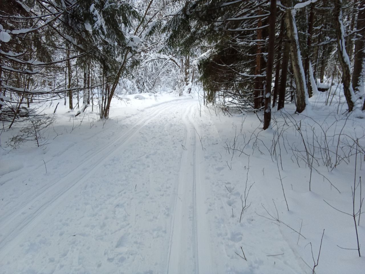 Давно так душевно не отдыхал. Пока едешь- приводишь свои мысли в порядок. Лыжня одна, но встречные лыжники никакого неудобства не создают, даже наоборот, все приветливы и готовы помочь.