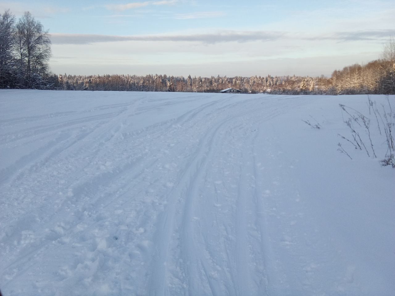 У пл. Калистово начинается хорошая нарезанная лыжня и идет вдоль газопровода в западном направлении. В сторону радонежской просеки шла хорошая снегоходка, по ней вполне комфортно ехать. Далее, после Артёмово нарезано бураном 2 хорошие лыжни, которые выводят на Радонежскую просеку. На самой просеке достаточно многолюдно. В районе севернее Герасимихи лыжня самотопом. Бугры, ветки низко пригнуты снегом, часто в лицо, быстро там не поедешь. Зато лыжня нарезана по срезке ССВ, и далее, направо на Абрамцевскую просеку. На Абрамцевской широко, можно поехать побыстрее.