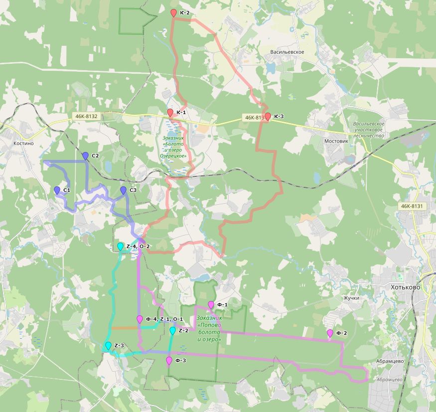 Также можно дополнить этот круг двумя ветвями по 15-17 км "фиолетового" круга, начинающегося недалеко от платформы Радонеж. Так получится 50 км.