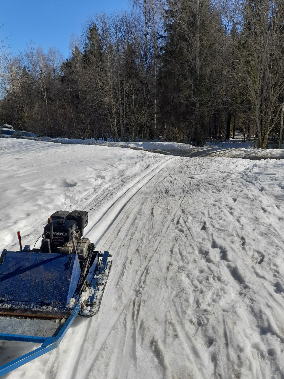 Сегодня нарезал лыжню, моим "мини рэтраком"😁 от Глебовского поля до стоянки машин... получается на 5+ ,где был "лесной мусор " получается отличная лыжня .