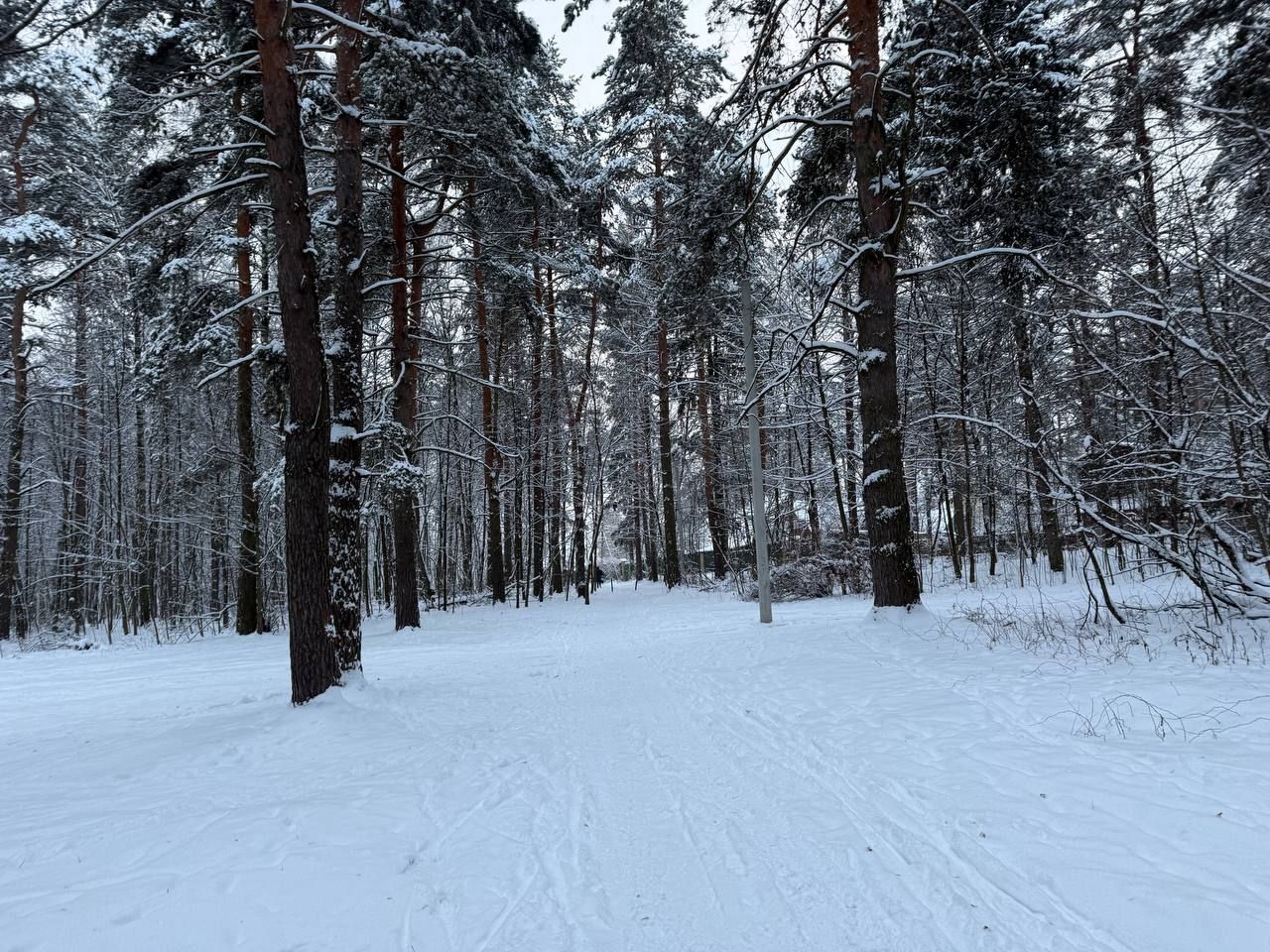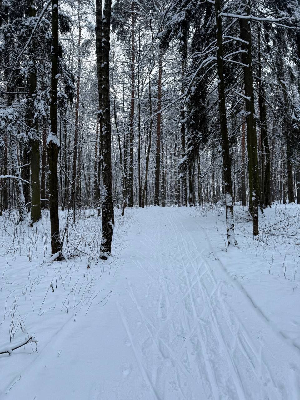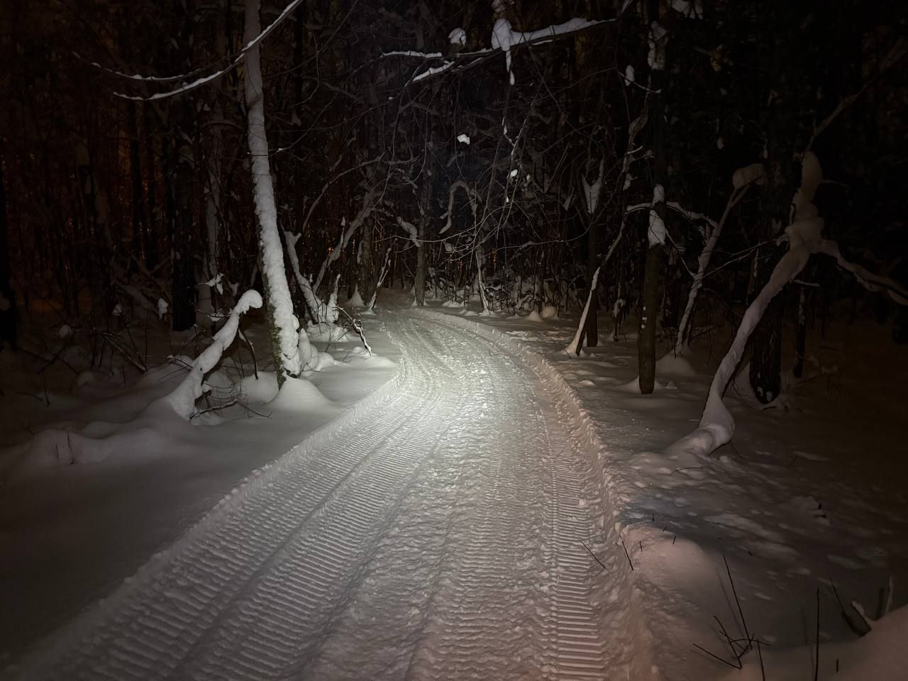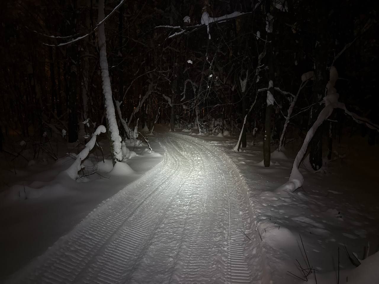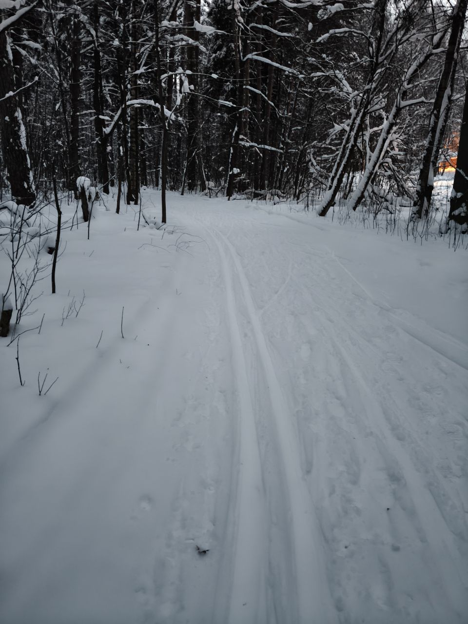 На трассе 5-7 см пухляка, чуть подраскатанного лыжниками. Основа плотная. Тяжеловато. Лыжники есть, дети занимаются. Надеюсь на днях еще прокатают и будет топ. 17 предположительная лыжная гонка Балашихинского спорткомитета на новой "недоосвещенке"