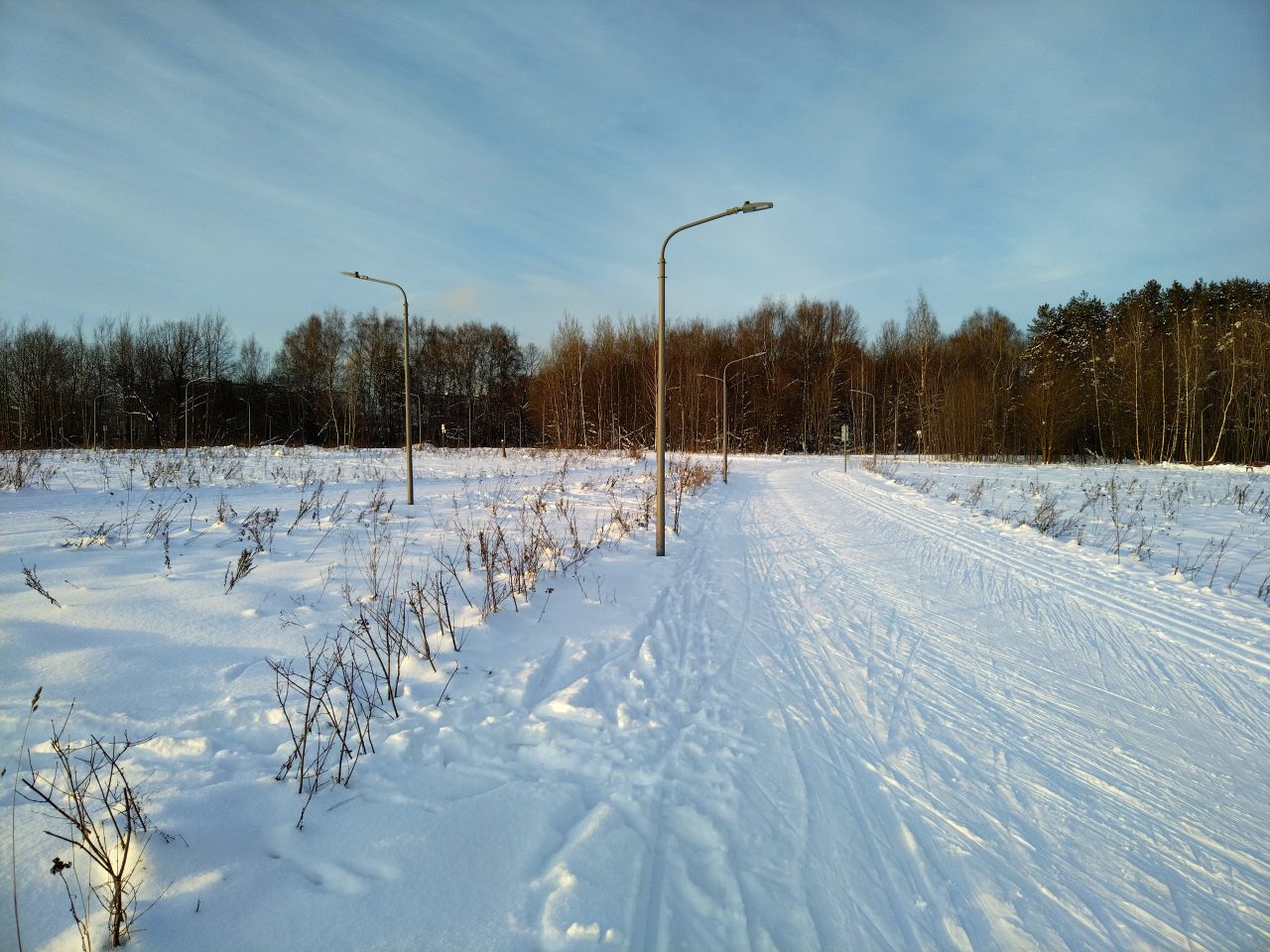 20 января, вечер. Круг 7,5 км в своём праймовом состоянии, плотно, не бетон, комфортно отталкиваться и держать равновесие. Ну может быть, подъёмы немного рыхловаты.