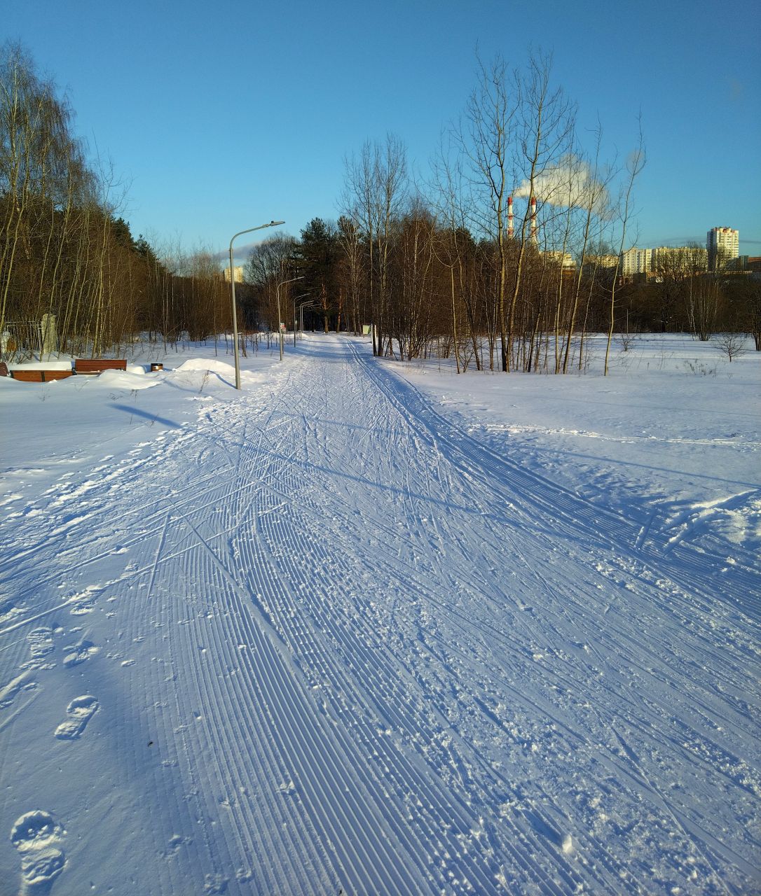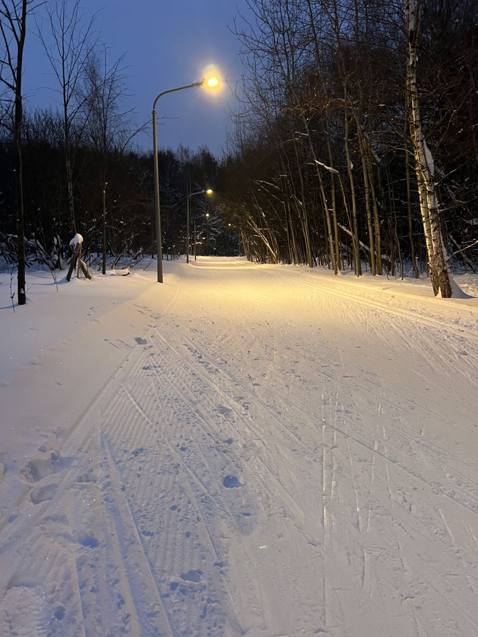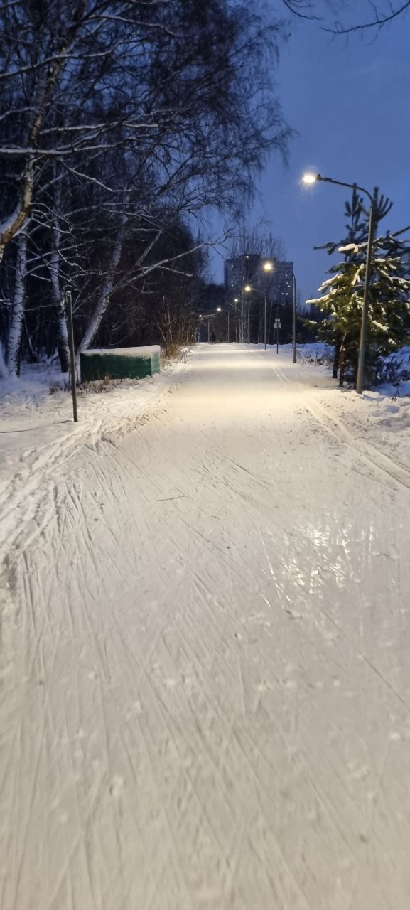 20 января, вечер. Круг 7,5 км в своём праймовом состоянии, плотно, не бетон, комфортно отталкиваться и держать равновесие. Ну может быть, подъёмы немного рыхловаты.
