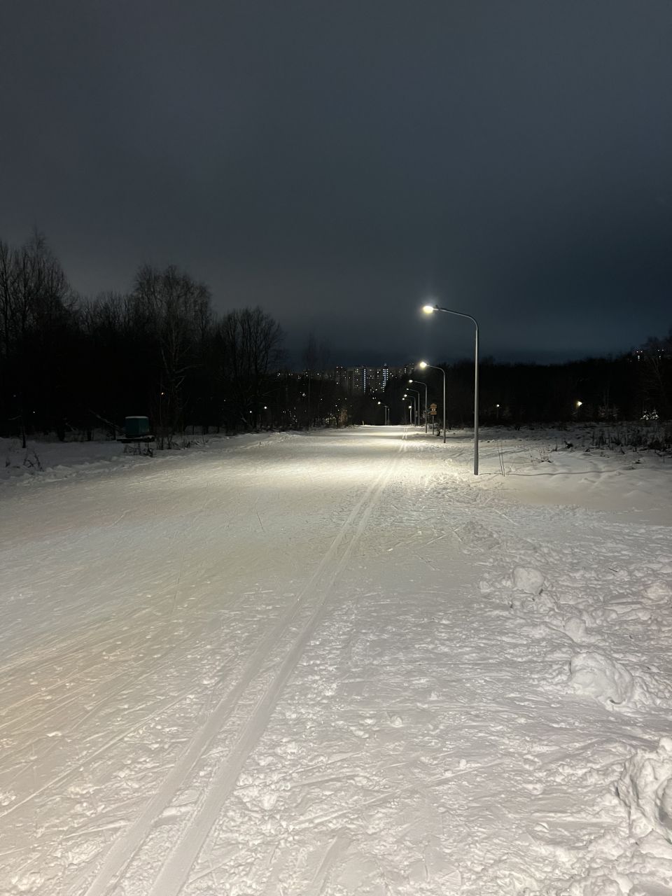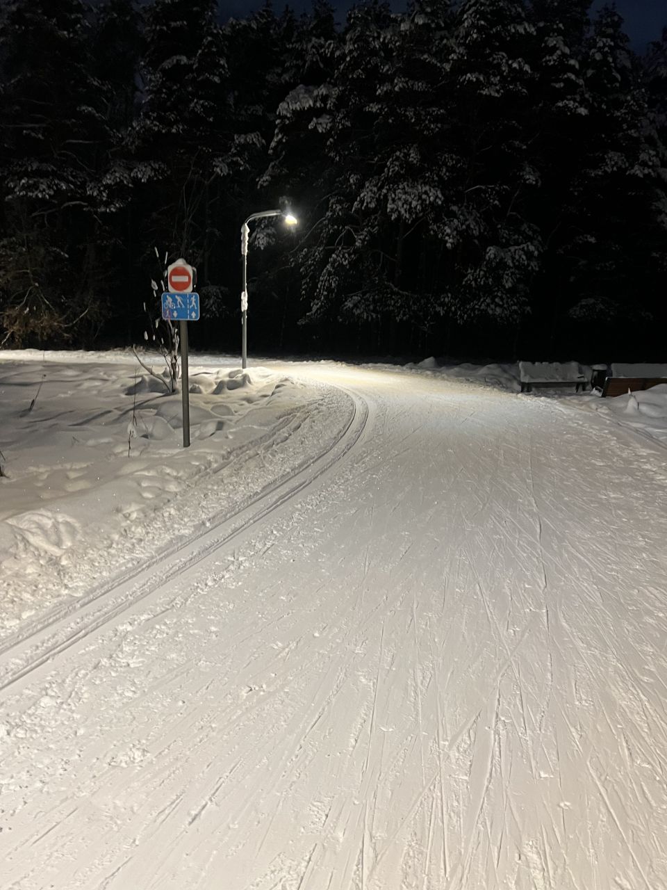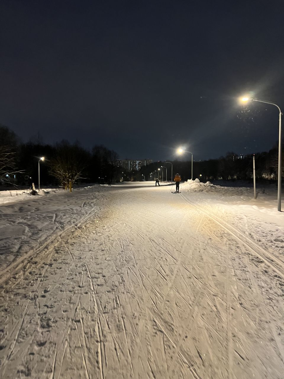 20 января, вечер. Круг 7,5 км в своём праймовом состоянии, плотно, не бетон, комфортно отталкиваться и держать равновесие. Ну может быть, подъёмы немного рыхловаты.
