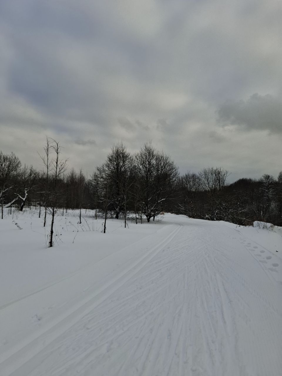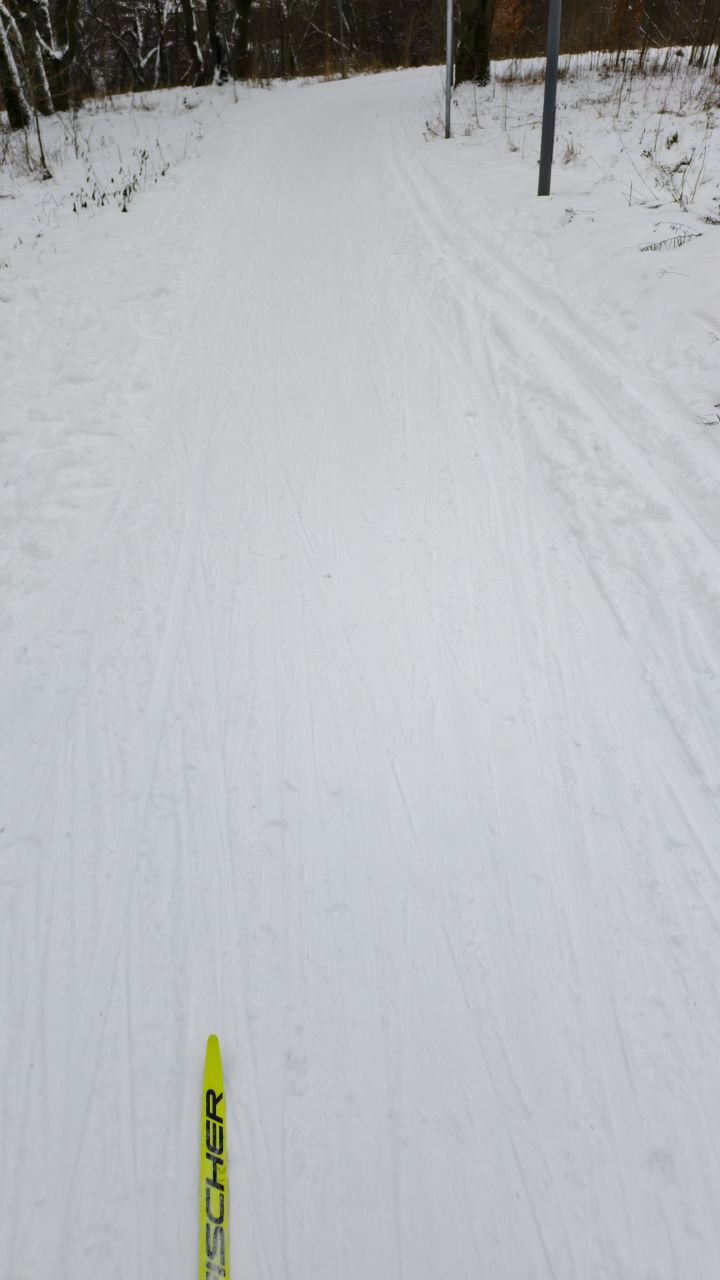 Там где стартовый широкий участок - отлично и ровно, можно прям накатывать в кайф, часть у леса неровная и в паре мест полоски ледка, думаю как докинут - подравняют. В целом вполне можно катать на нормальных лыжах.