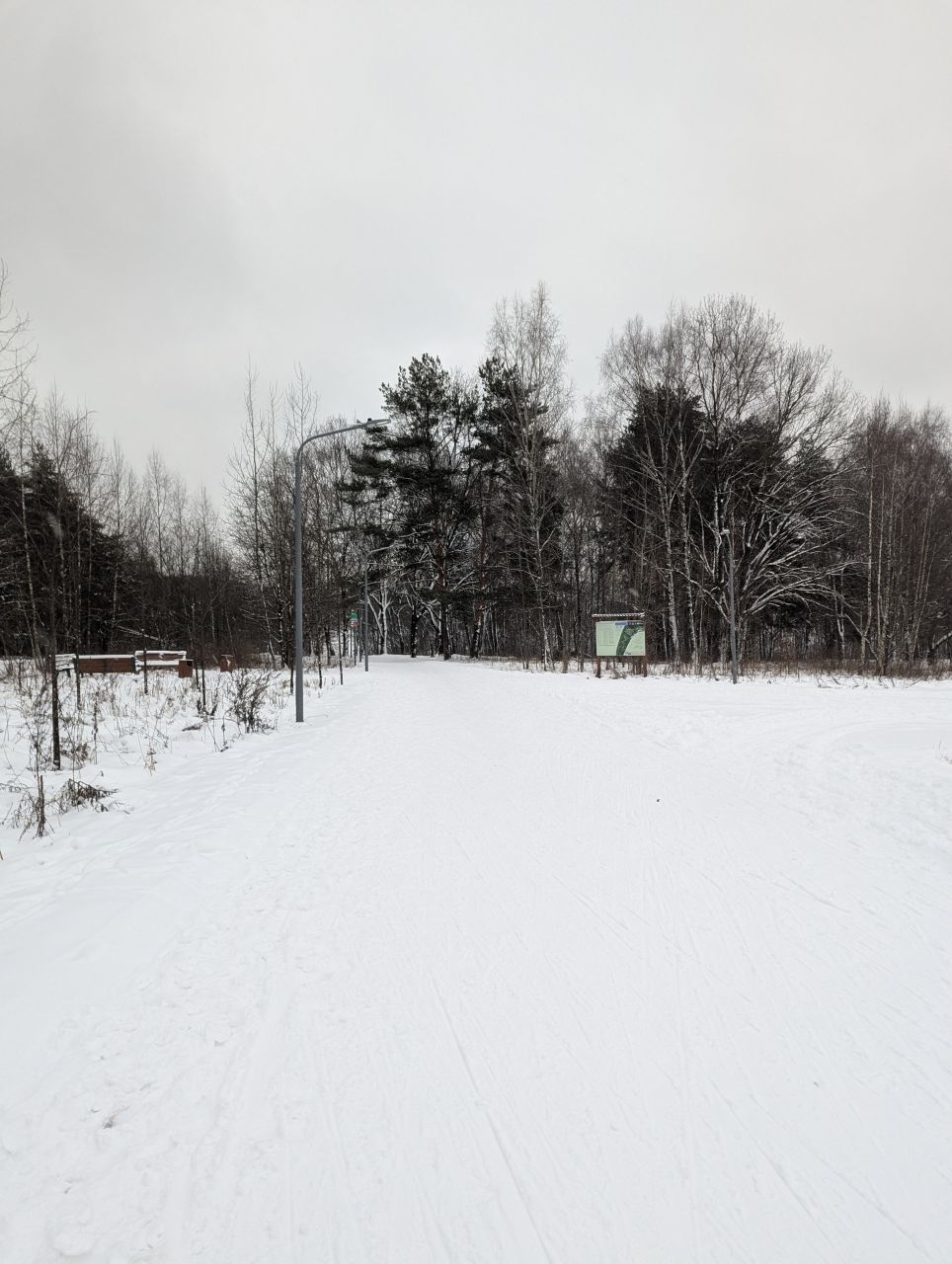 Был впервые на этой трассе. Вся трасса уже хорошо подходит для тренировок на хороших лыжах. Достаточно много людей, в 10 утра пришлось поискать место на парковке, но на трассе никакого дискомфорта. Немного плотнее на коротких кругах, очень свободно на дальних. Рельеф конечно скучный, но зато должно быть очень комфортно делать длинные тренировки.