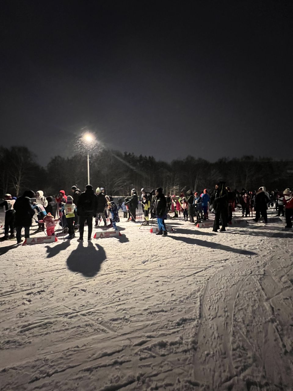 В Алёшкино сегодня прекрасно. Проехал пару раз 7,5 км. Все присыпано свежаком, но это абсолютно не мешает. Лыжников днем было не очень много. Но в 17.00 начались соревнования, которые продлятся примерно до 20.00. Стало многолюдно на стартовой площадке. После соревнований вероятно трассу освежат.