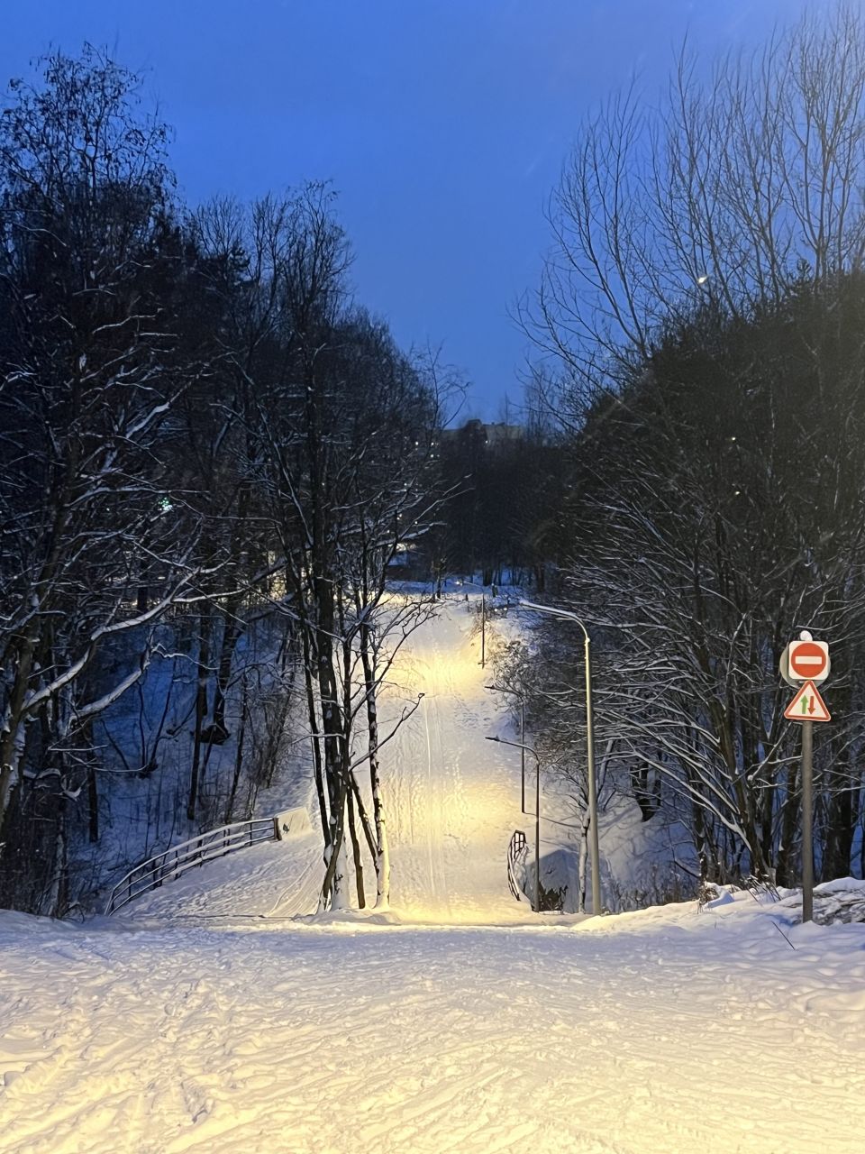 Оказалось, что зимние петли тоже освещаются (за исключением петли к часовне, там в принципе фонарей нет). Но оба грунтовых спуска освещены, очень приятно. Освещение выключают ровно в 23.