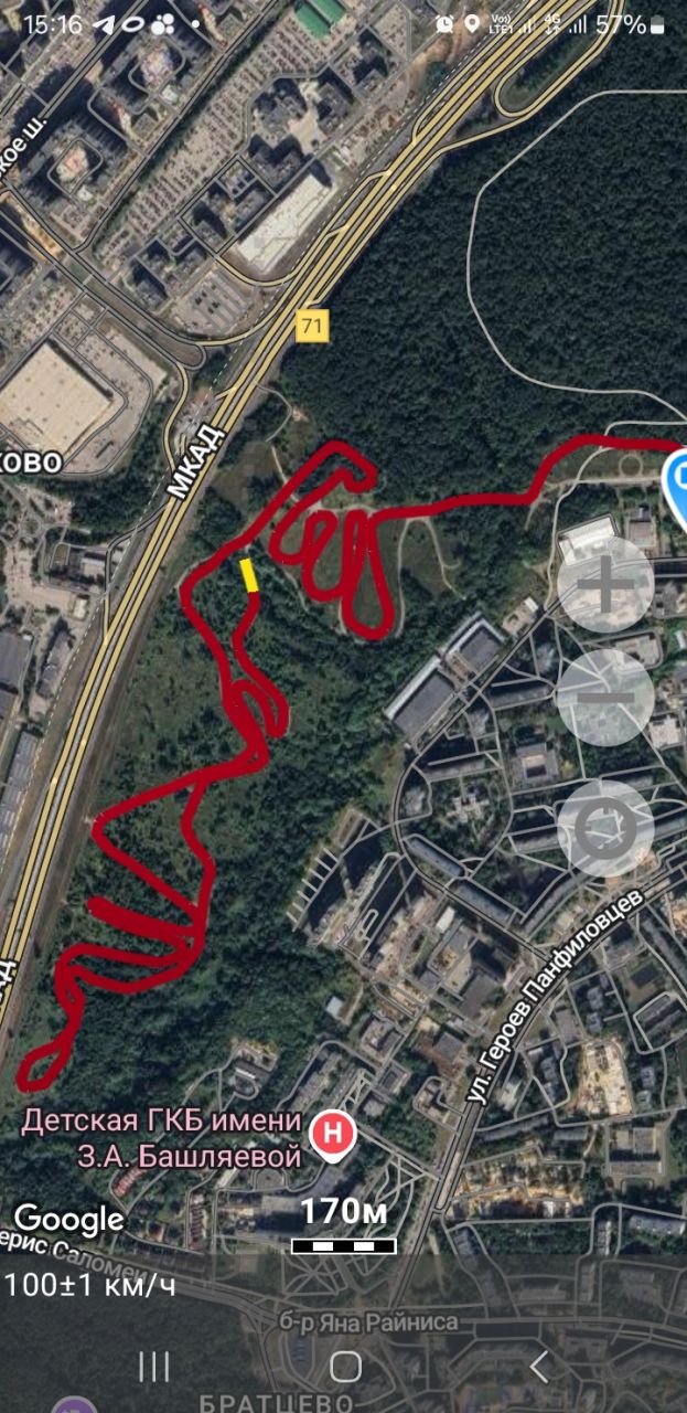 Желтым пунктиром - планируемые закольцовки 350 или 600 метров, в зависимости от погоды.
