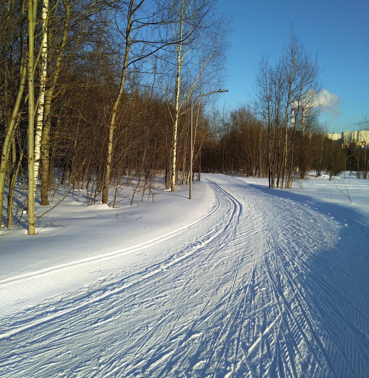 Трасса отлично укатана на всем протяжении полного, 7.5км, круга плюс петли РХТУ. Мусора нет, скольжение супер. Оценка 5 из 5