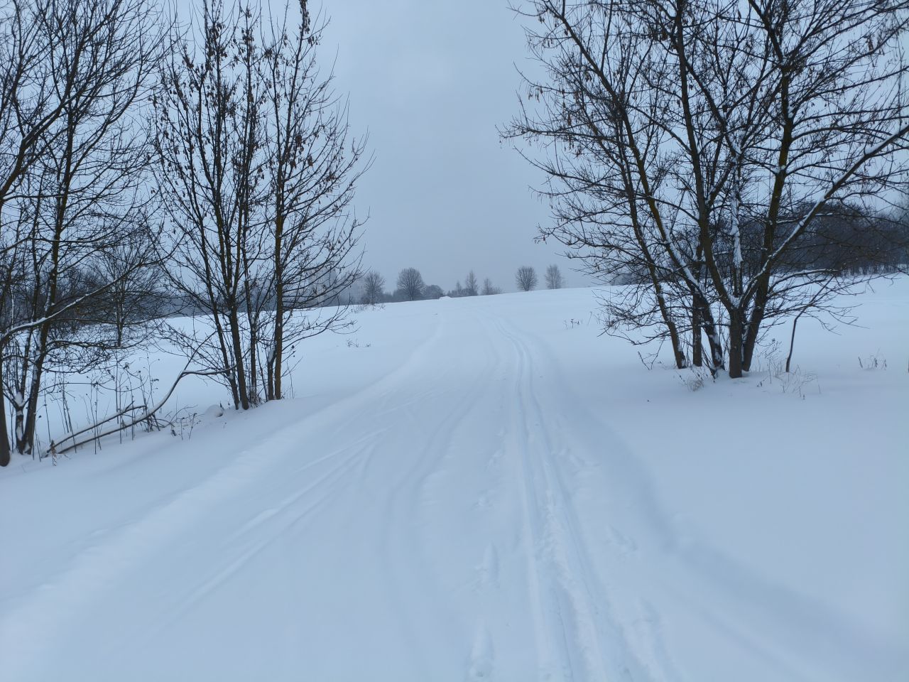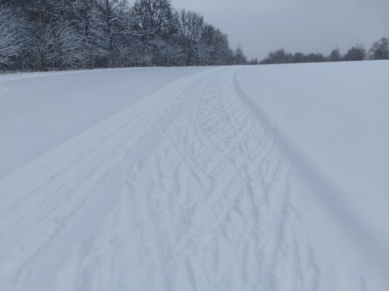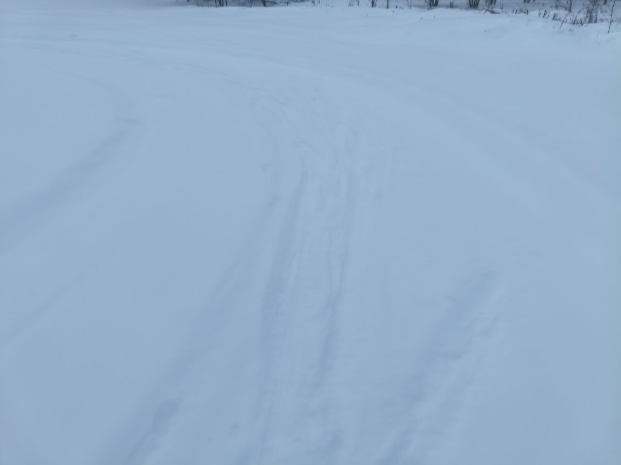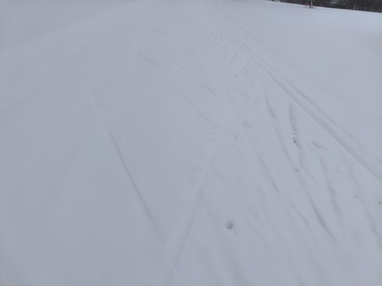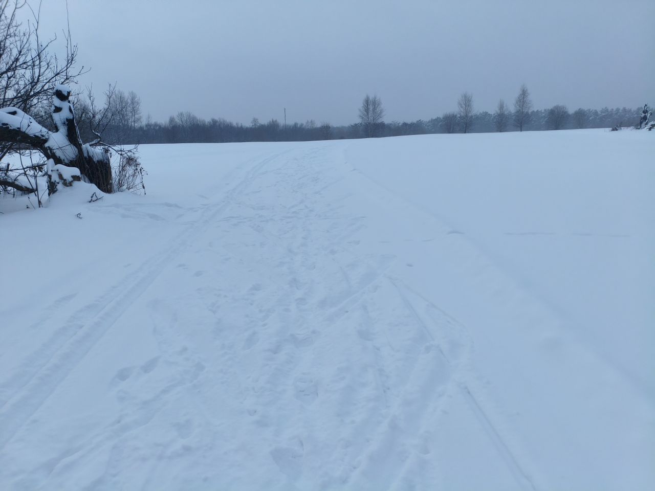 Трасса в лесу немного припорошена снегом и чуть разбита, электропитбайки около старта ещё добавили, на 4-м километре кто-то проехался на мелком тракторе или багги и ещё добил трассу. На поле первая петля рабочая, остальные 3 как пробили 2-го числа, так там и проехало всего 5 человек за всё время.