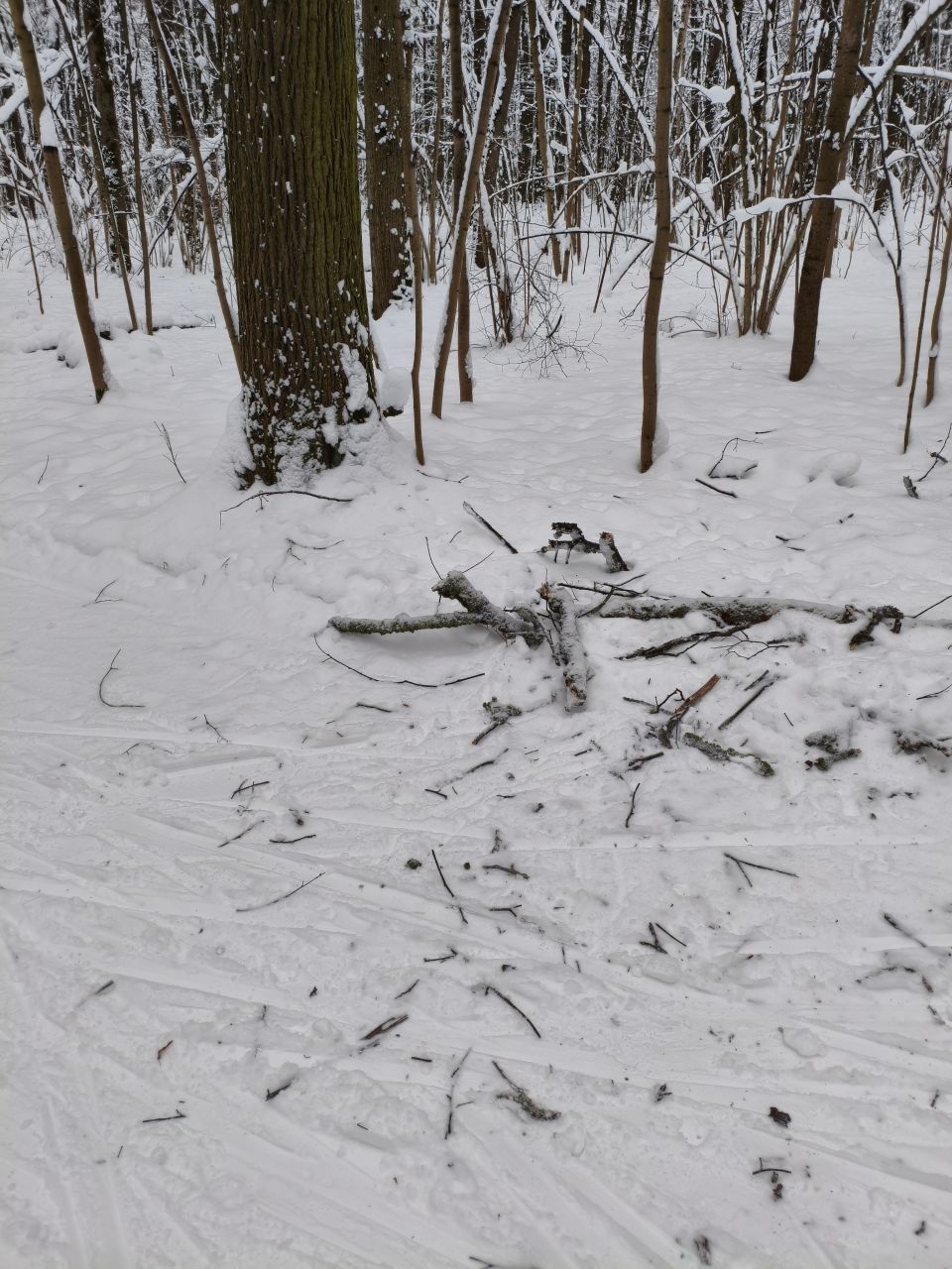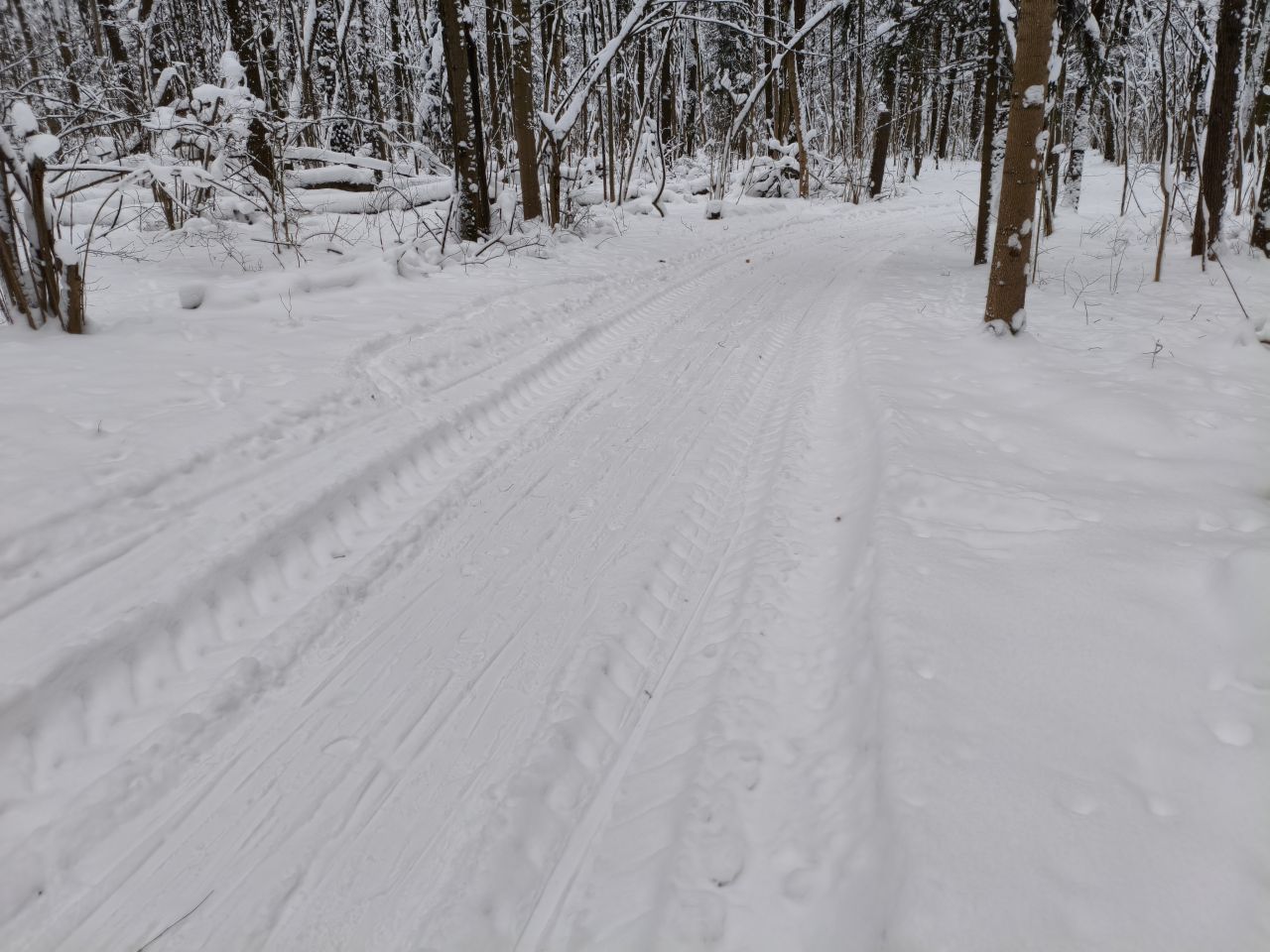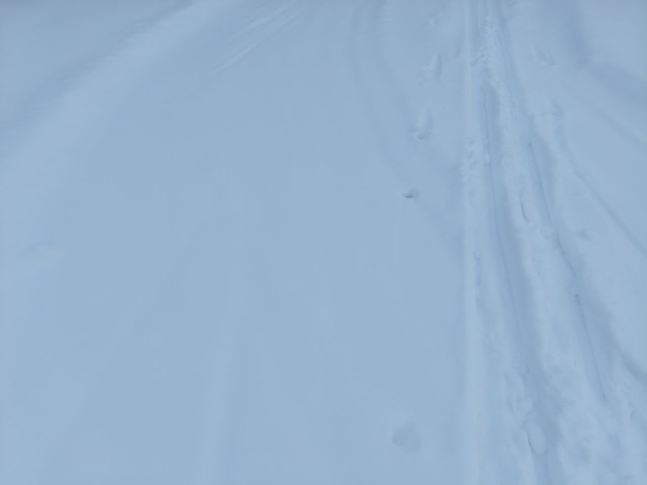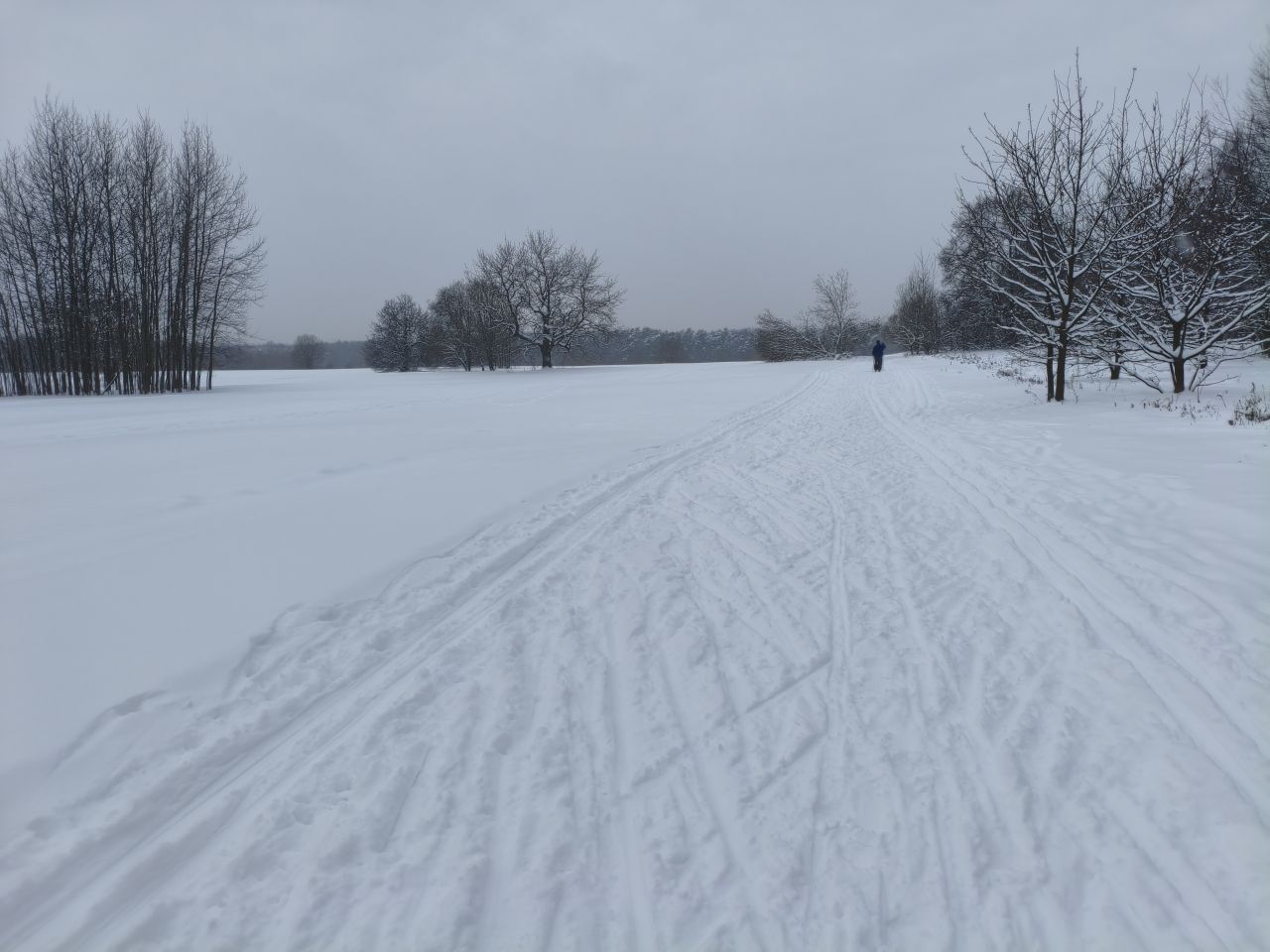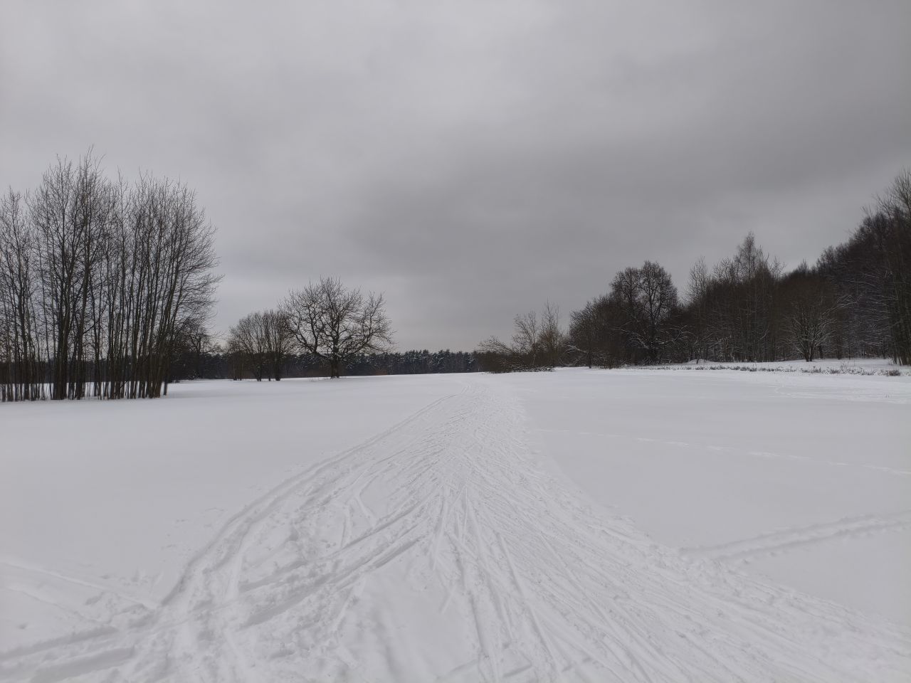 Трасса в лесу немного припорошена снегом и чуть разбита, электропитбайки около старта ещё добавили, на 4-м километре кто-то проехался на мелком тракторе или багги и ещё добил трассу. На поле первая петля рабочая, остальные 3 как пробили 2-го числа, так там и проехало всего 5 человек за всё время.