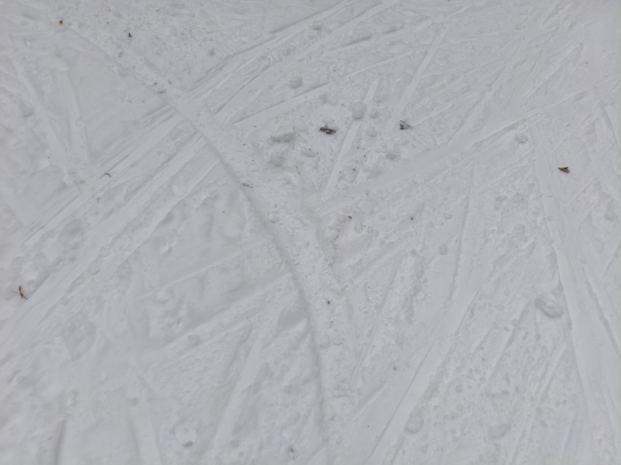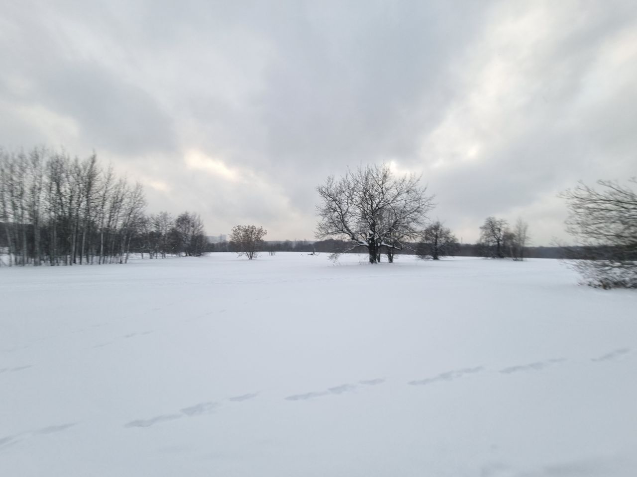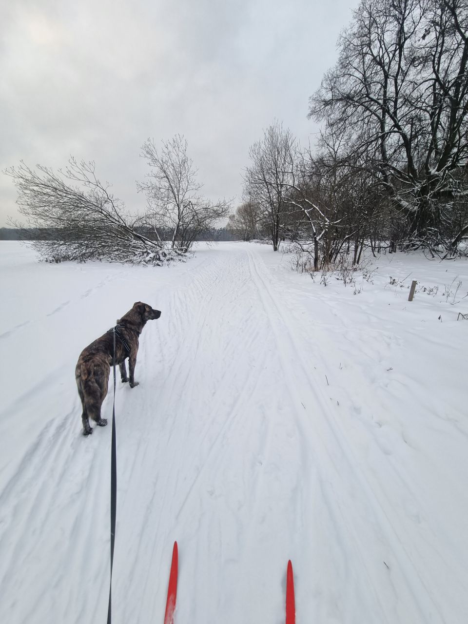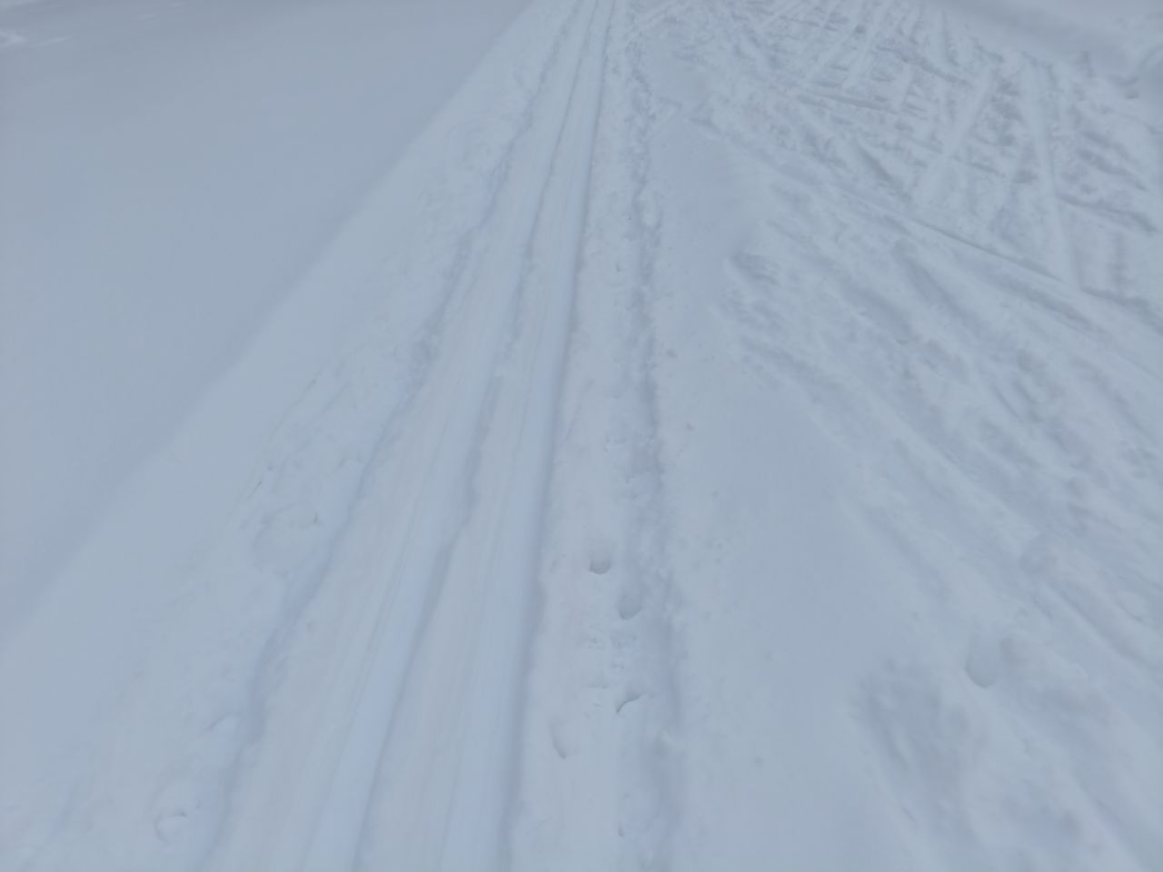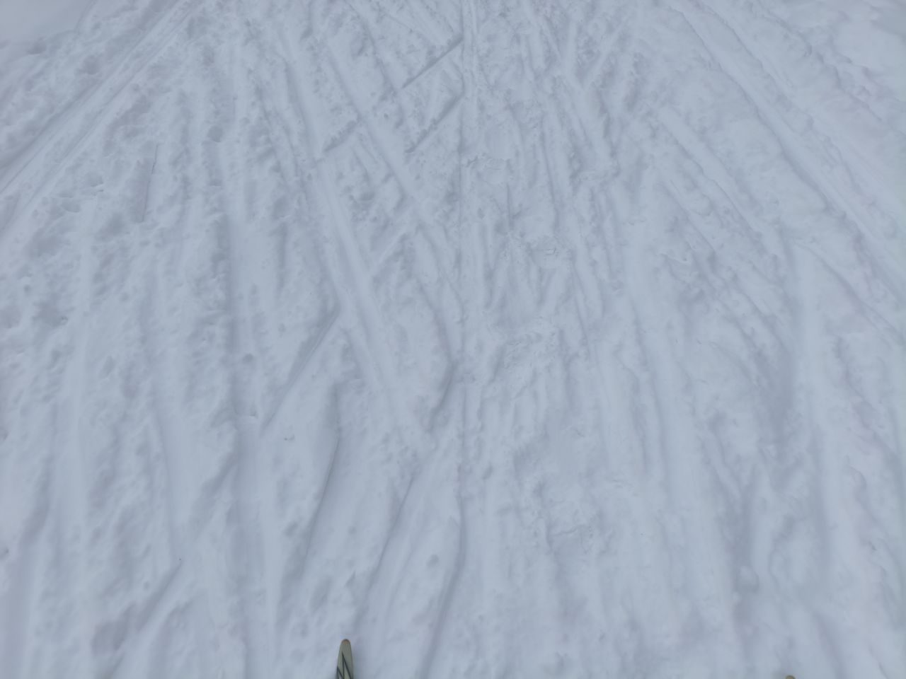 Трасса в лесу немного припорошена снегом и чуть разбита, электропитбайки около старта ещё добавили, на 4-м километре кто-то проехался на мелком тракторе или багги и ещё добил трассу. На поле первая петля рабочая, остальные 3 как пробили 2-го числа, так там и проехало всего 5 человек за всё время.