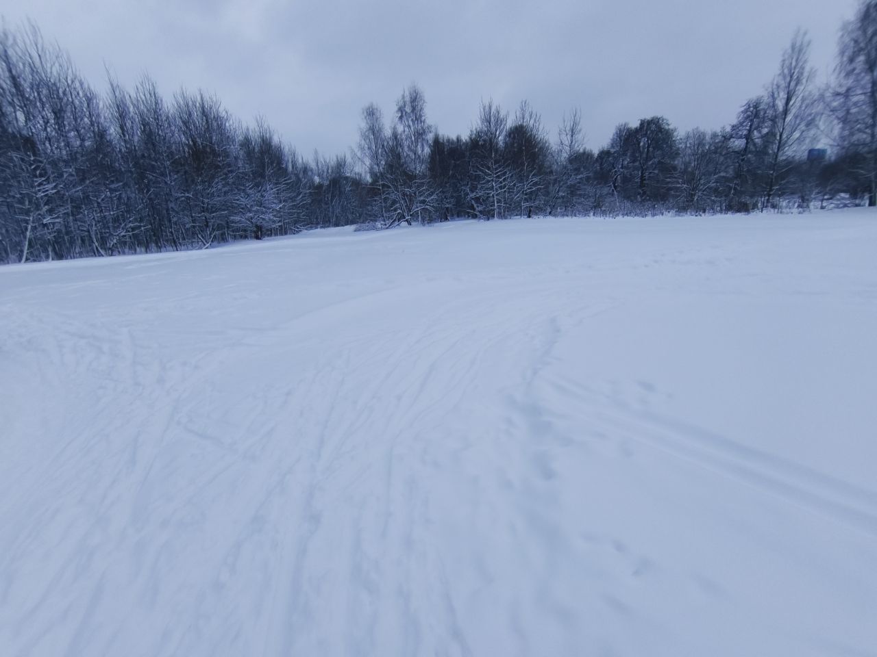 Сегодня почти все хорошо. На центральной аллее трактор организовал колею. Коньковым не очень удобно толкаться. Аналогично на одном из подъемов. На поле волшебно.