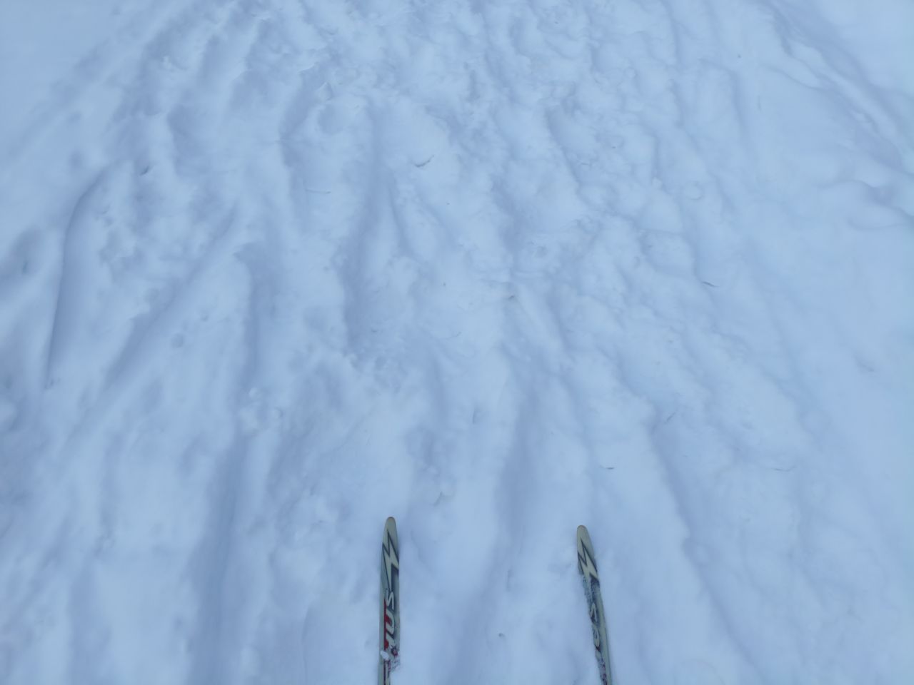 В поле все 4 петли на 4/5, хотя видно что техники не было с прошлого года. Немного палки проваливаются. В лесу бетон и очень узко, на спусках несет.