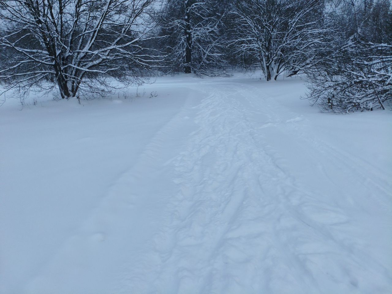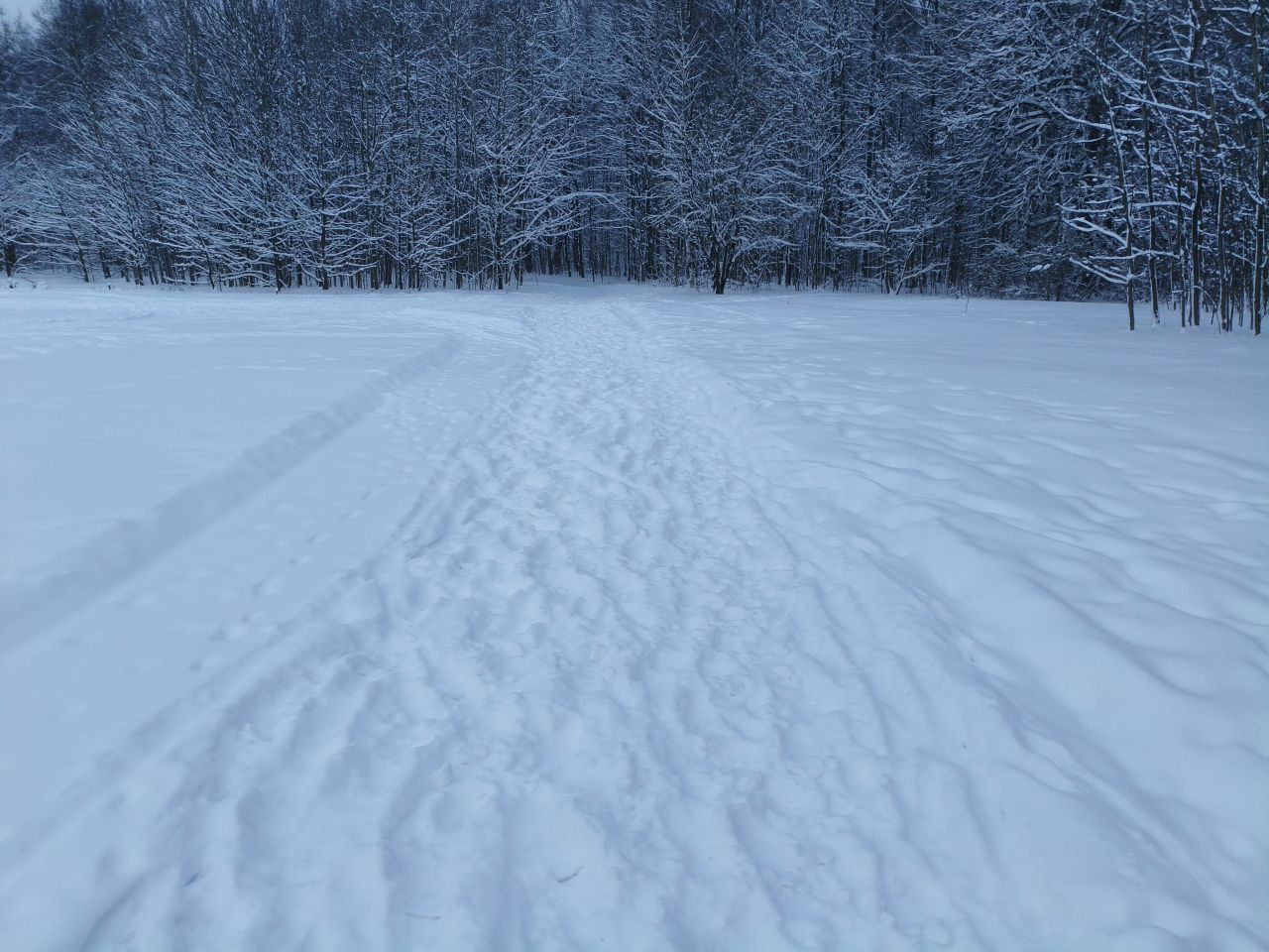 Как в лесу так и на поляне трасса протоптана энтузиастами, не в полном объёме.