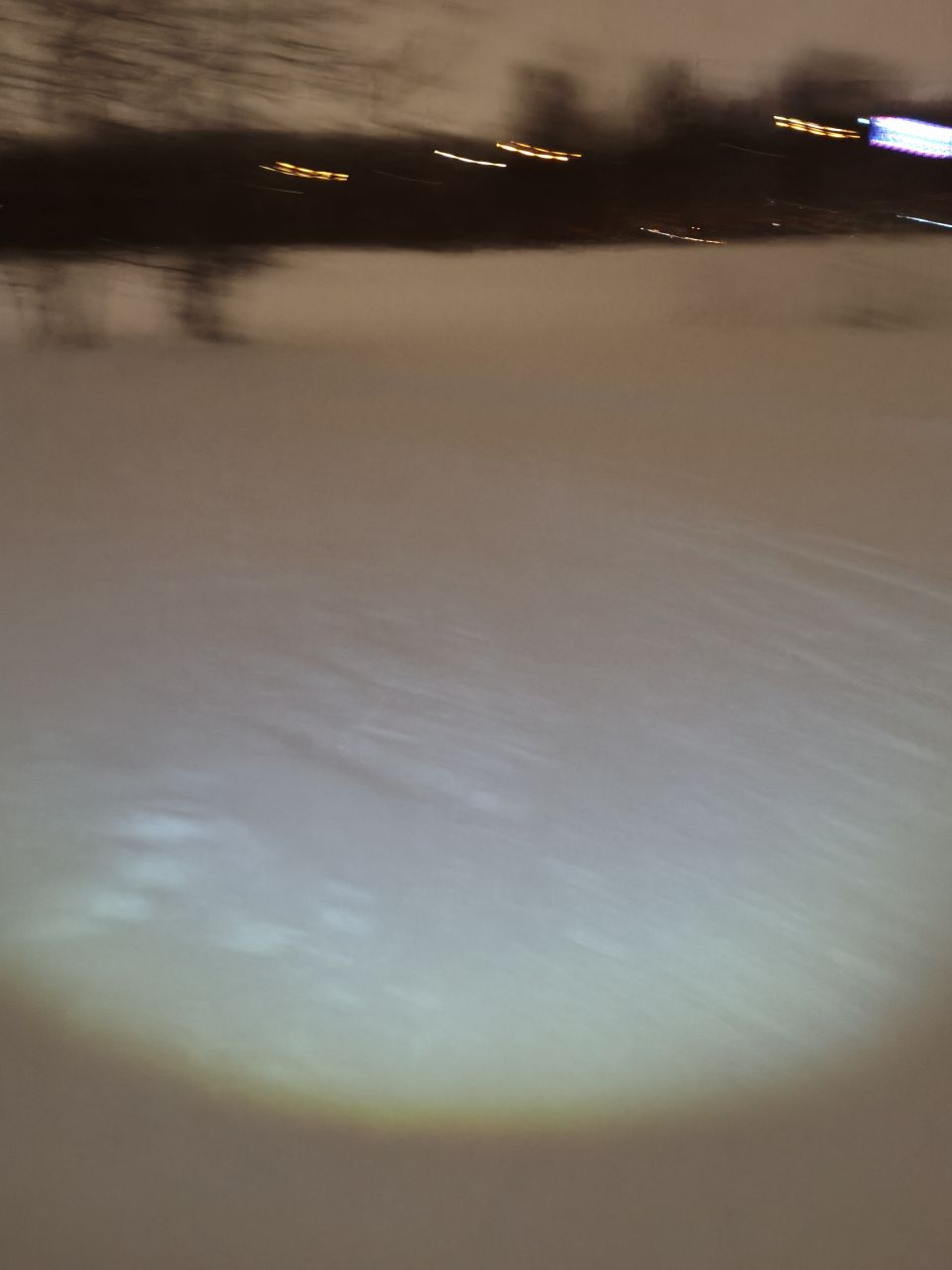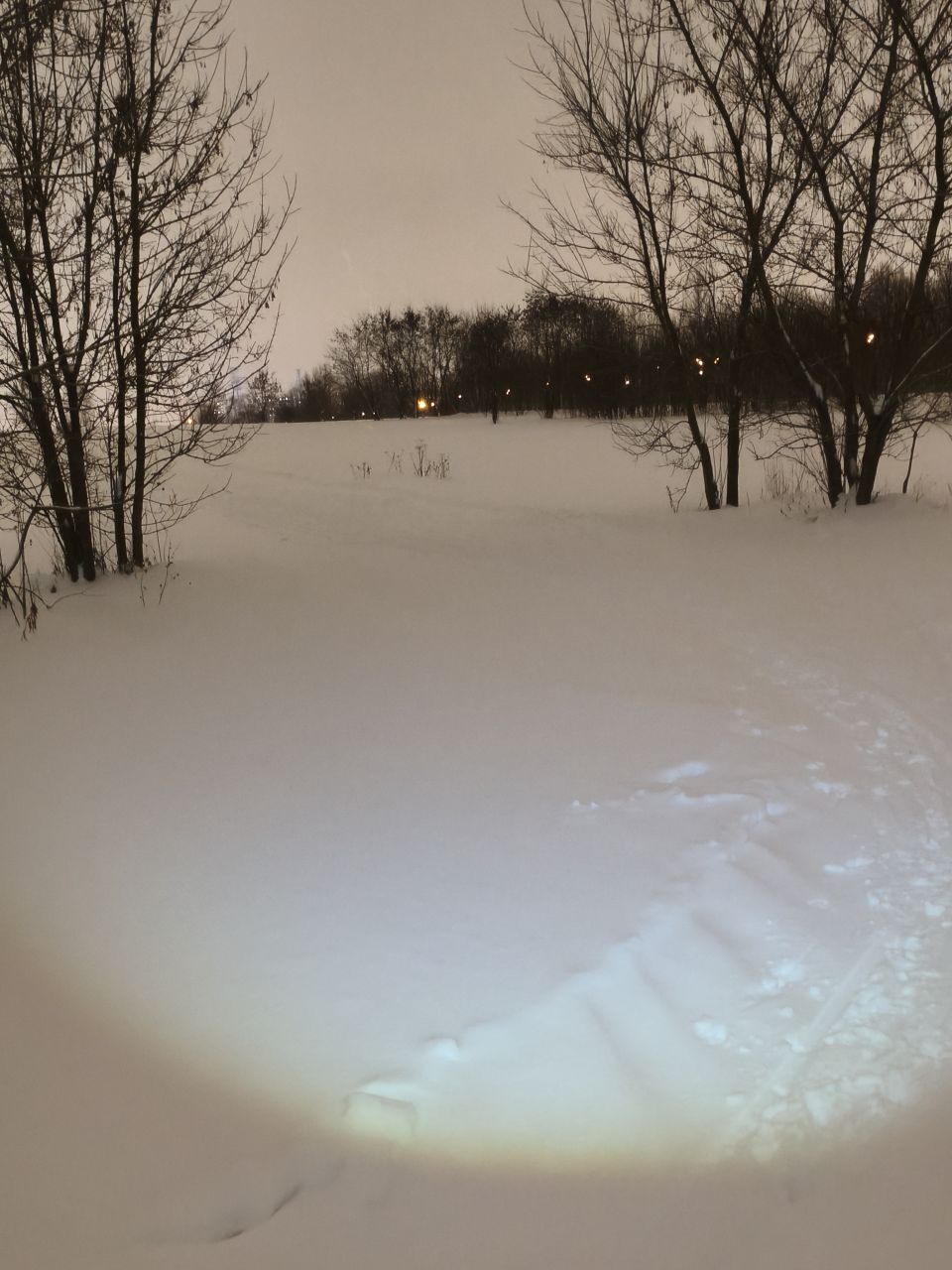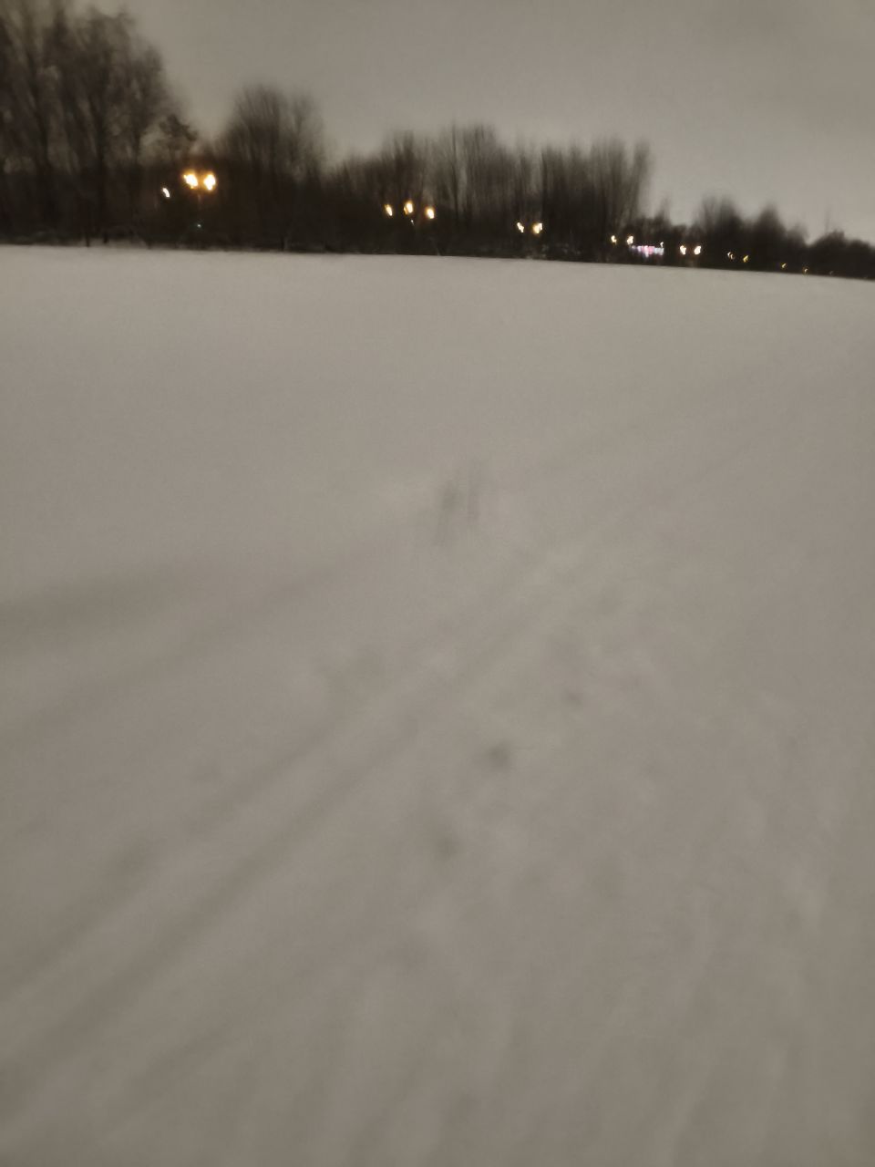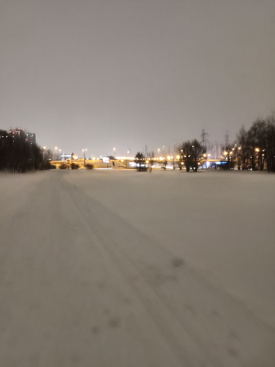 Лыжи скользят так себе, снег мягкий, на прогулочной дороге что в сторону Ямыблиз ЖК скользит как на профессиональной трассе — разительно лучше, в отличие от трассы Аннино. Все петли на поле "живые" люди катаются, фото с фонариком с 3-й петли.
