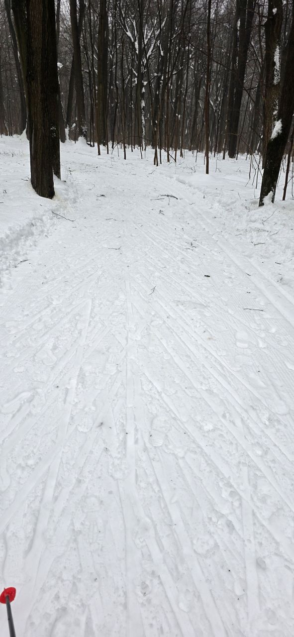 Актуально на 15-16 часов: стало мягко, на поле на дальних петлях палки стабильно проваливаются, ехать можно только по первой петле, что ближе к лесу. В лесу хорошо, по жестче, но много веток и собачьих сюрпризов.