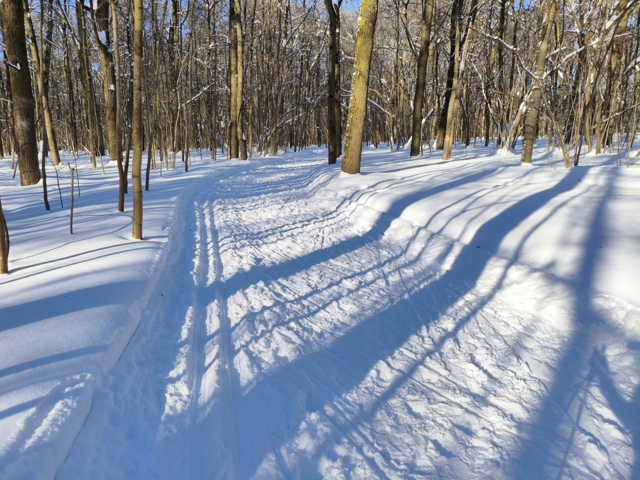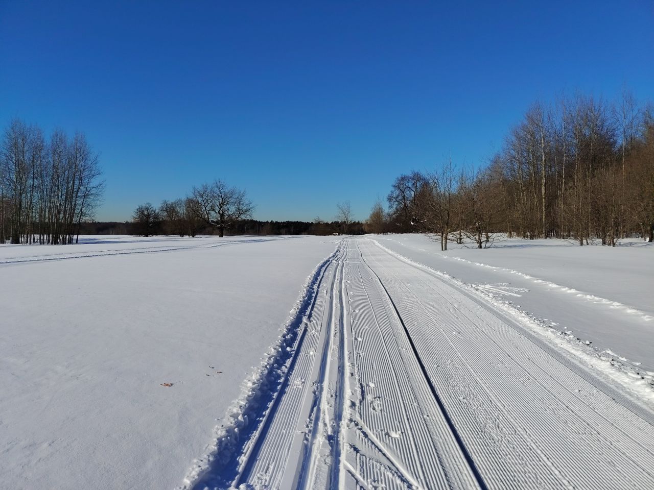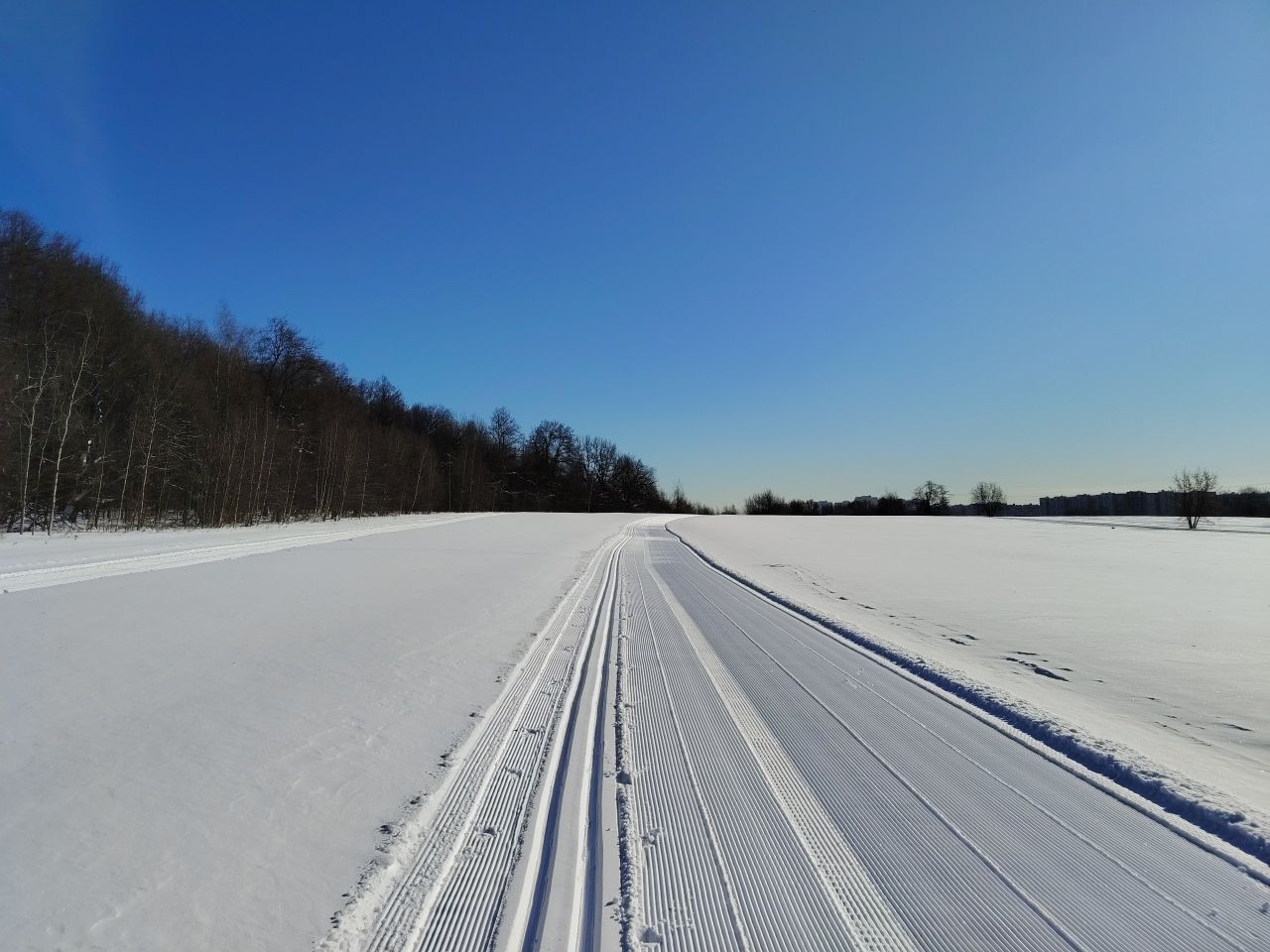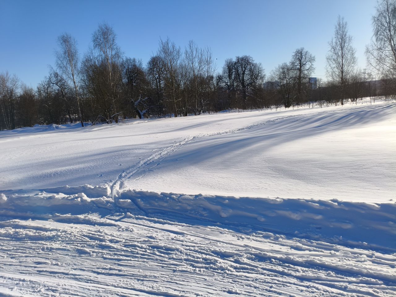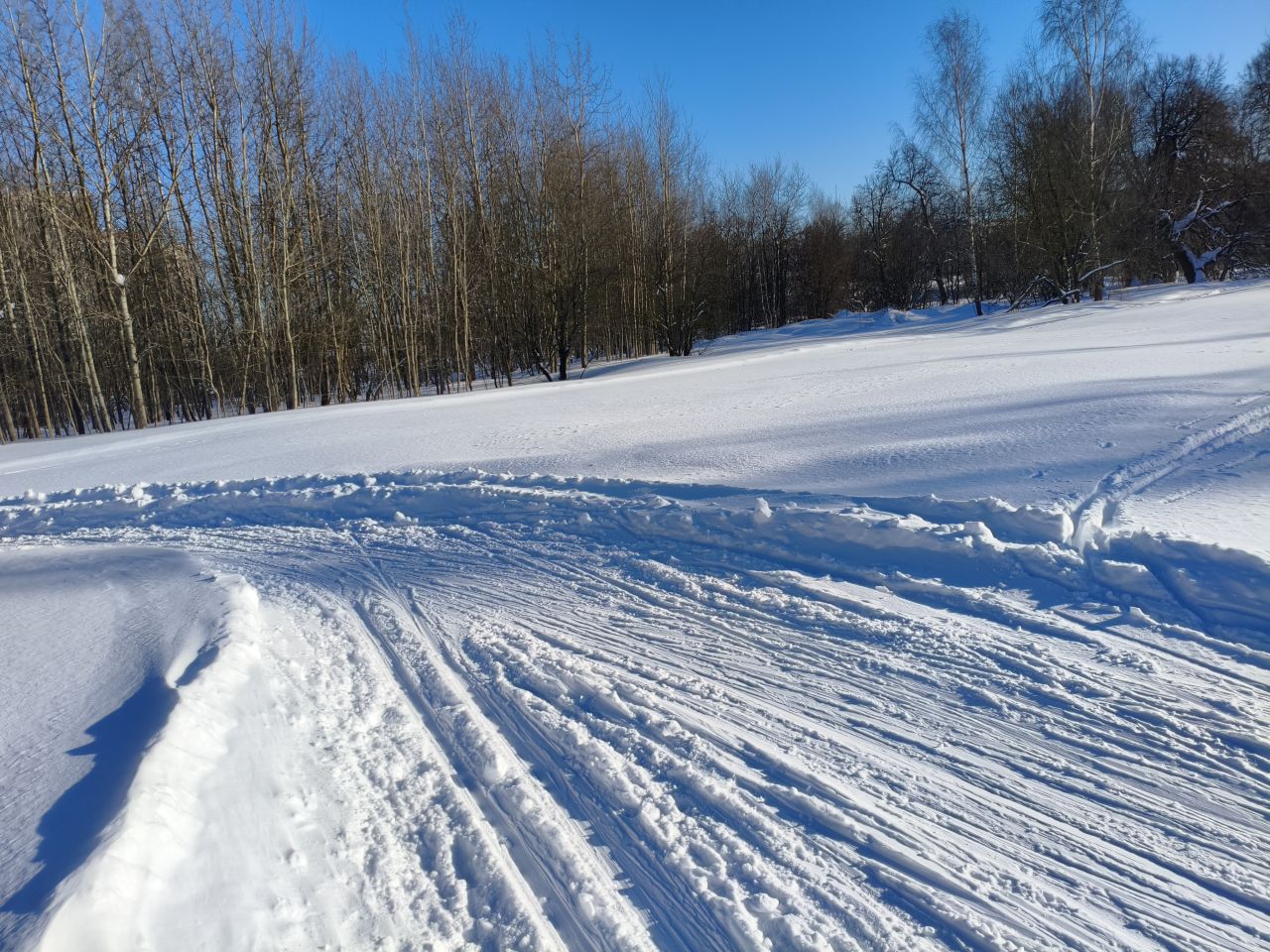 И в лесу, и на поле отлично! Мусора и веток нет, мягко! На спусках кое-где лыжня змейкой, видимо ратрак водило из стороны в сторону на мягком снеге. В целом, сказка!