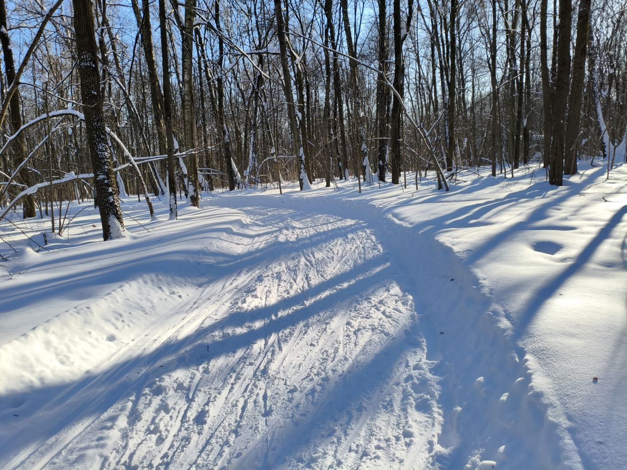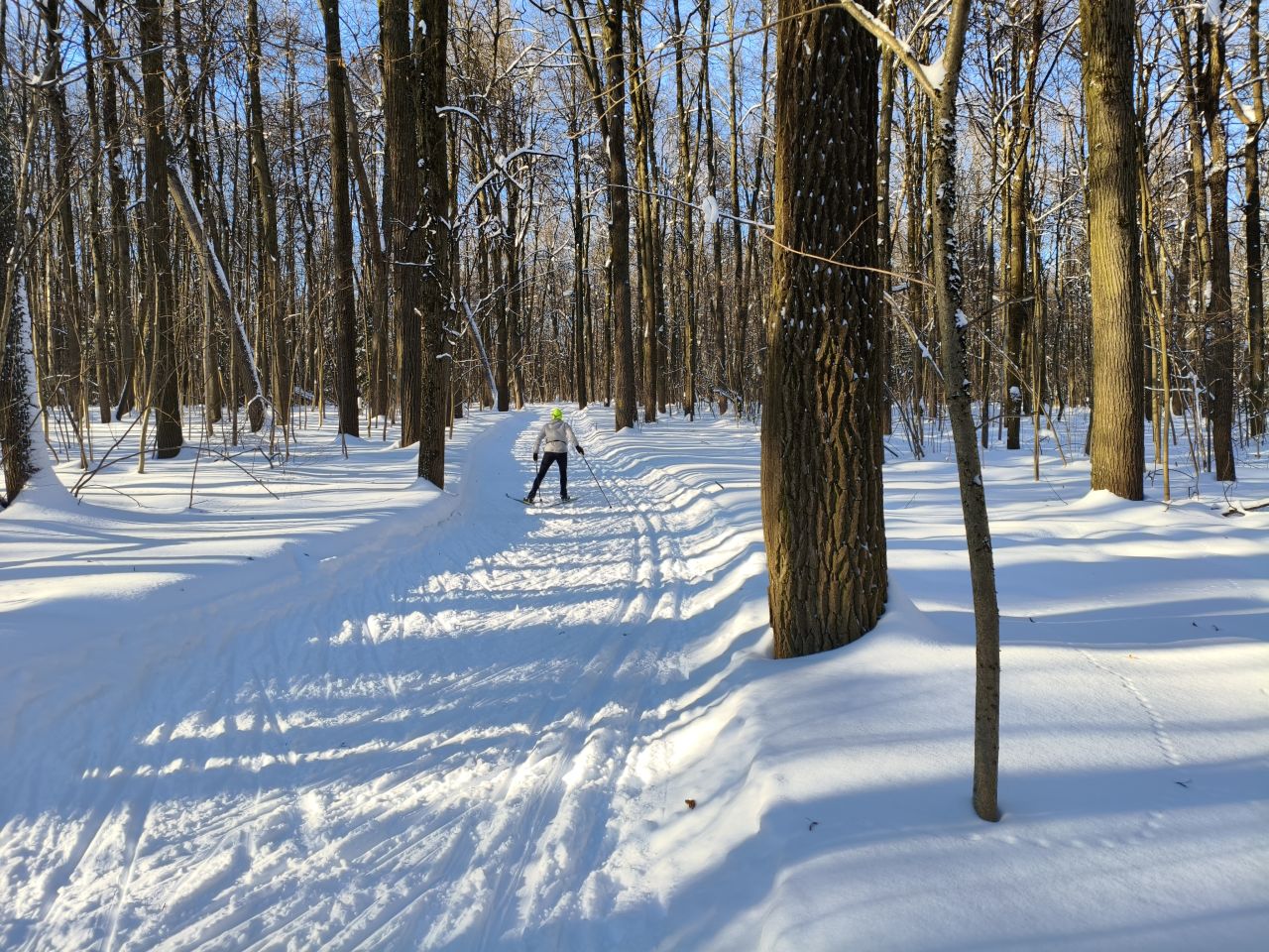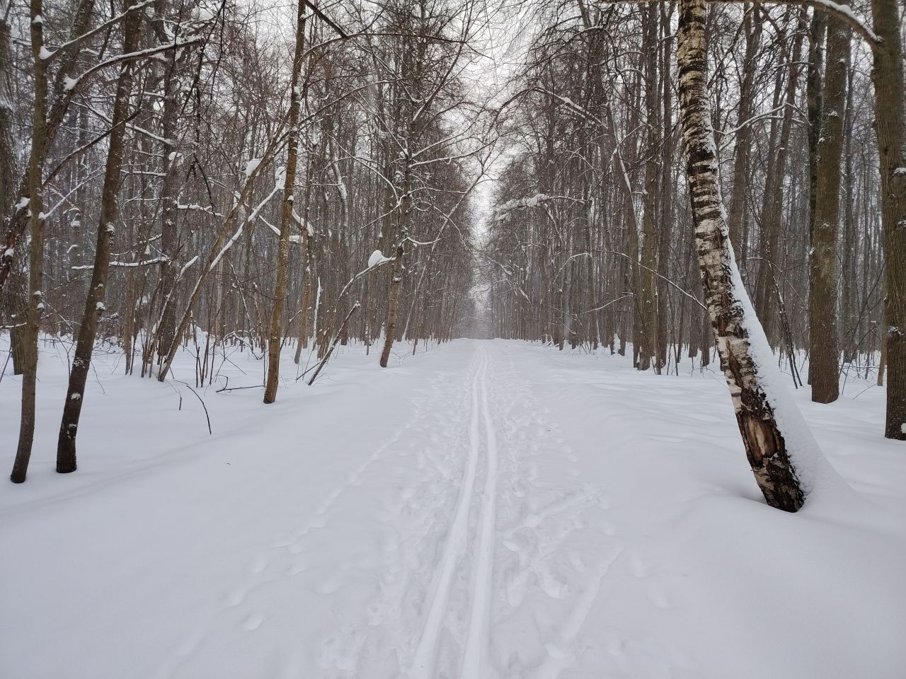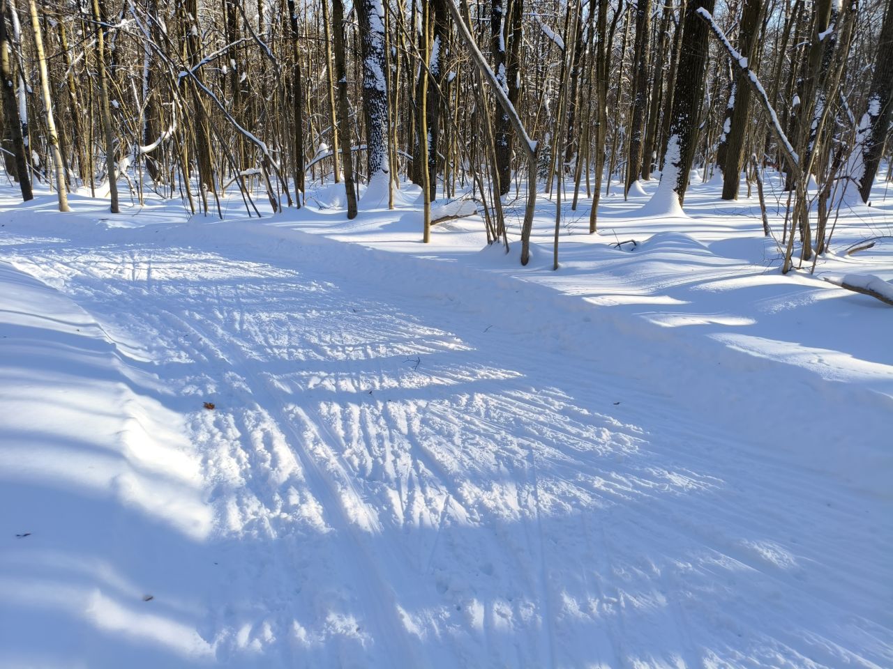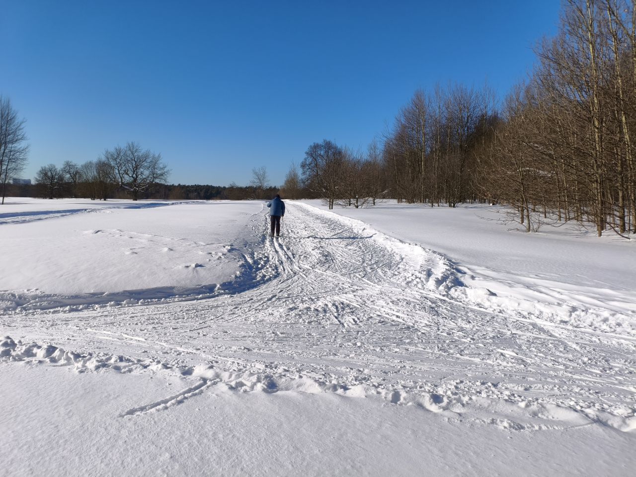 И в лесу, и на поле отлично! Мусора и веток нет, мягко! На спусках кое-где лыжня змейкой, видимо ратрак водило из стороны в сторону на мягком снеге. В целом, сказка!