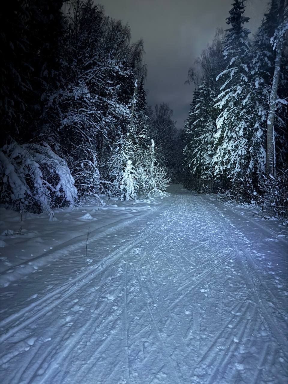 Состояние трассы очень приличное. Видно, что её регулярно поддерживают в течение сезона. Жёстко, комфортно. Классика отсутствует. Под ёлками довольно много опада, но не критично.