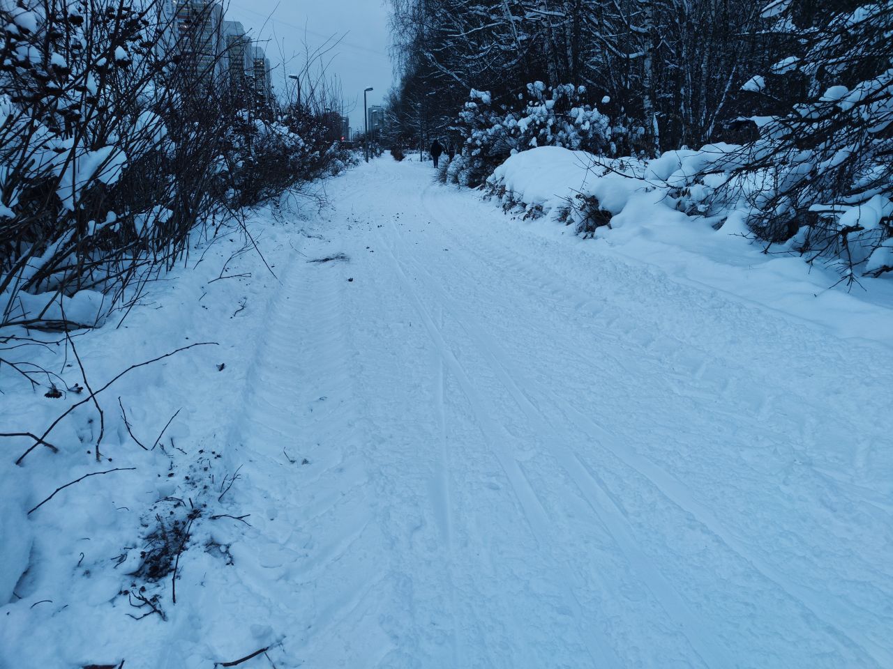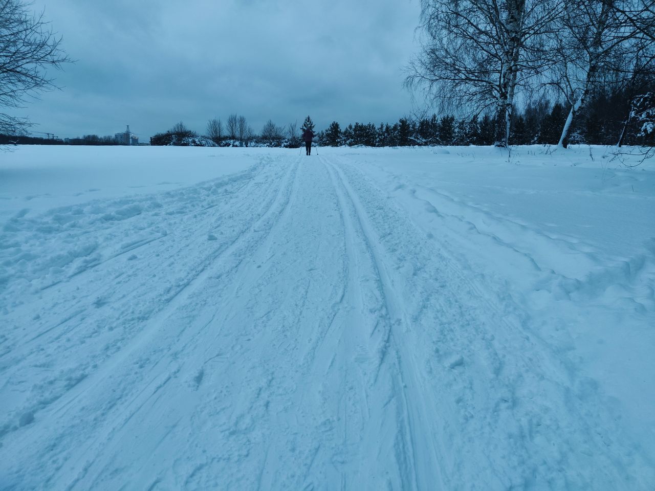 В целом лыжня нарезана, классика две лыжни. Между ними метра полтора, для полноценного конька узковато будет.