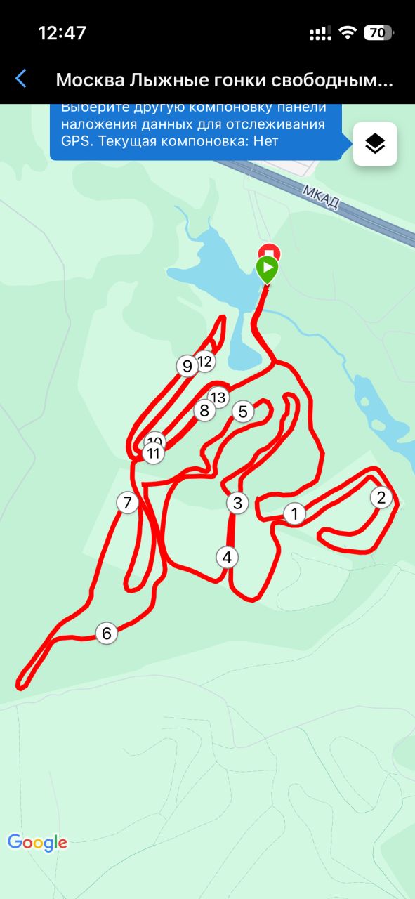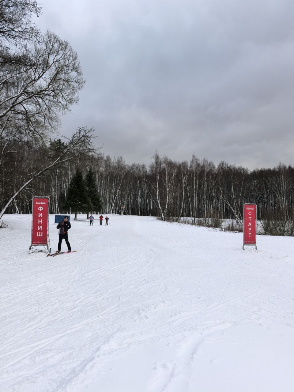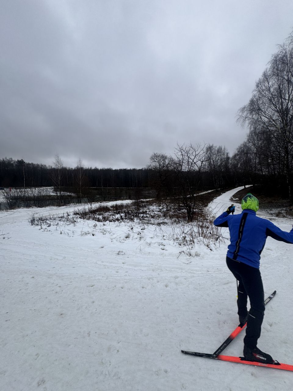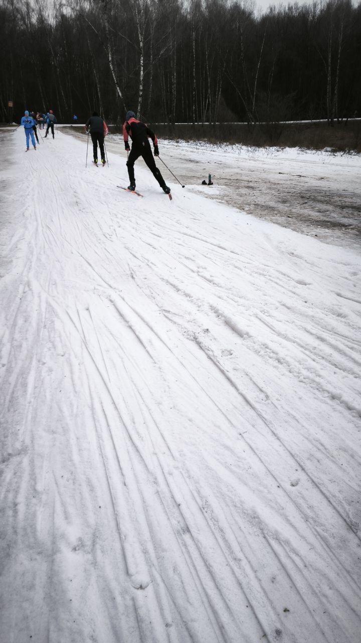 В остальном всё хорошо. Трасса рабочая, ночью подсыпало снежку, но скольжение по свежаку было нормальным. Народу мало. Полный круг получился примерно 15 км