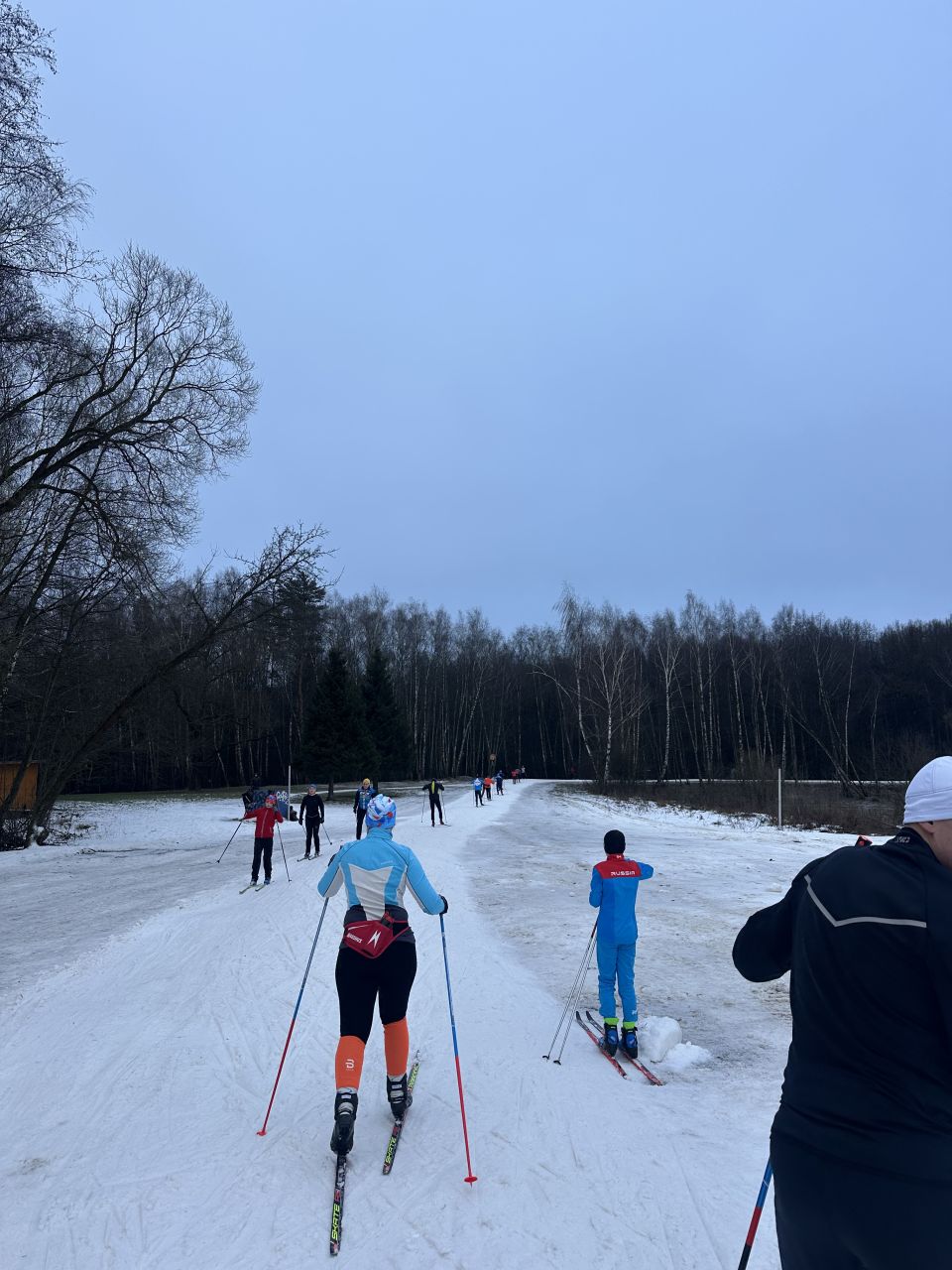 Круг примерно 15км, левая часть с дальними лесными подьемами проезжается на хороших лыжах без проблем. Естестенного снега пока мало, поэтому неровности на трассе. На ближних петлях в полях, где стреляли пушки, гораздо ровнее. Новогодней гонке быть!