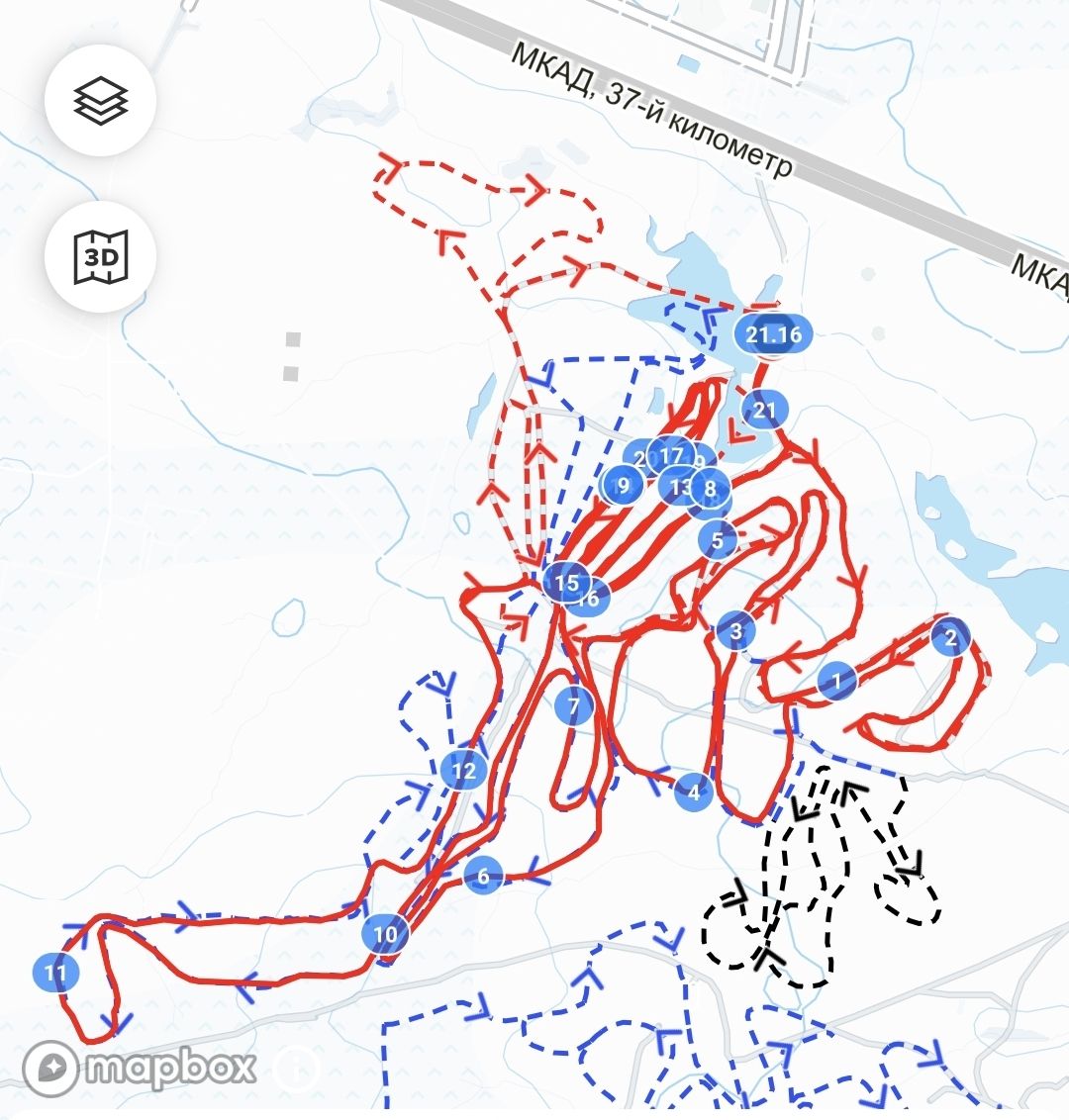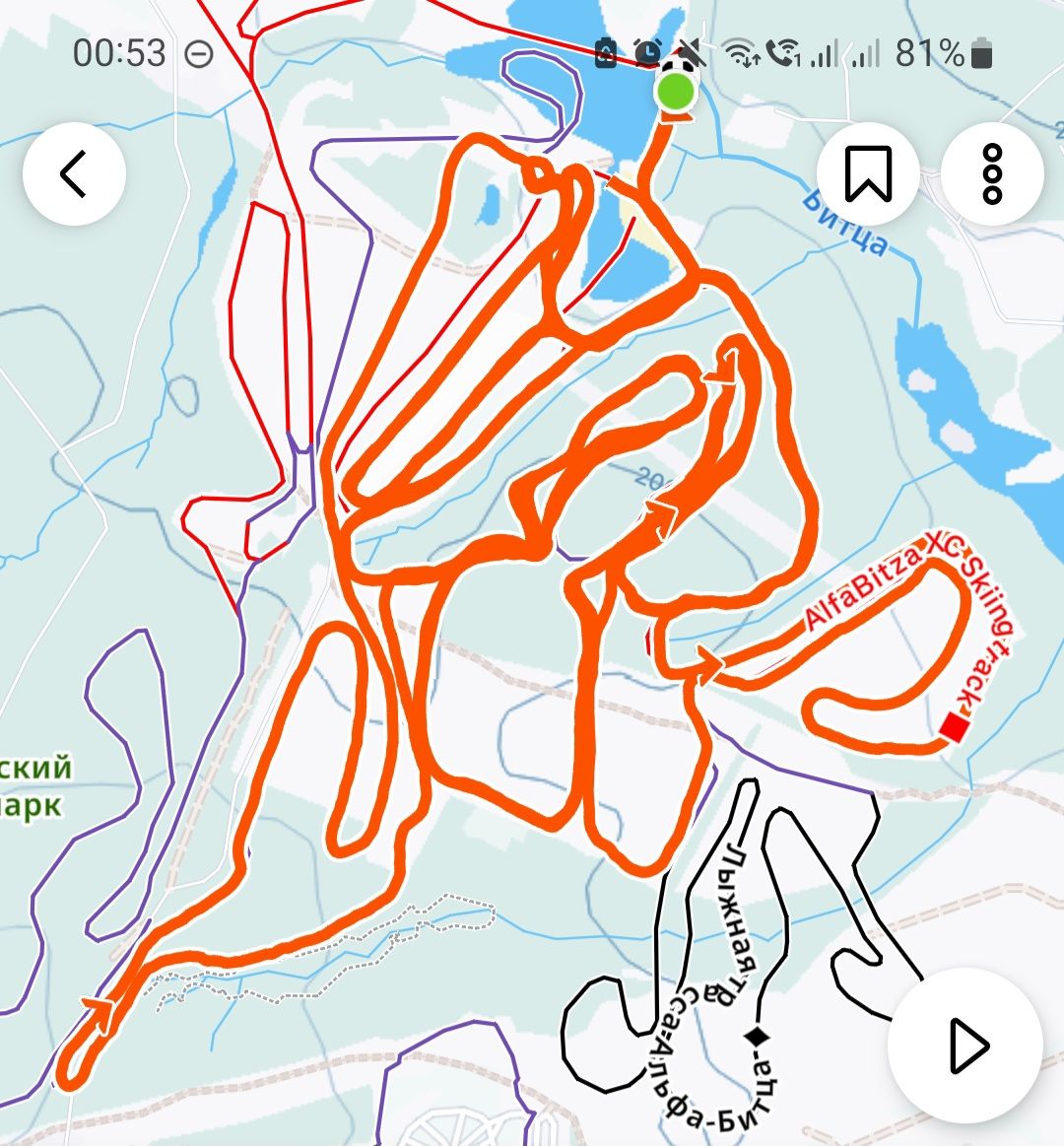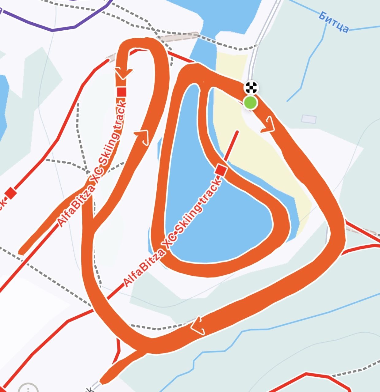Снега пока нет. 😂Пробежался из Полян в Альфа-битцу и обратно. Асфальт. Правда не совпадает с ходом. Местами переходит на параллельный подъем (спуск). Как будет зимой посмотрим.