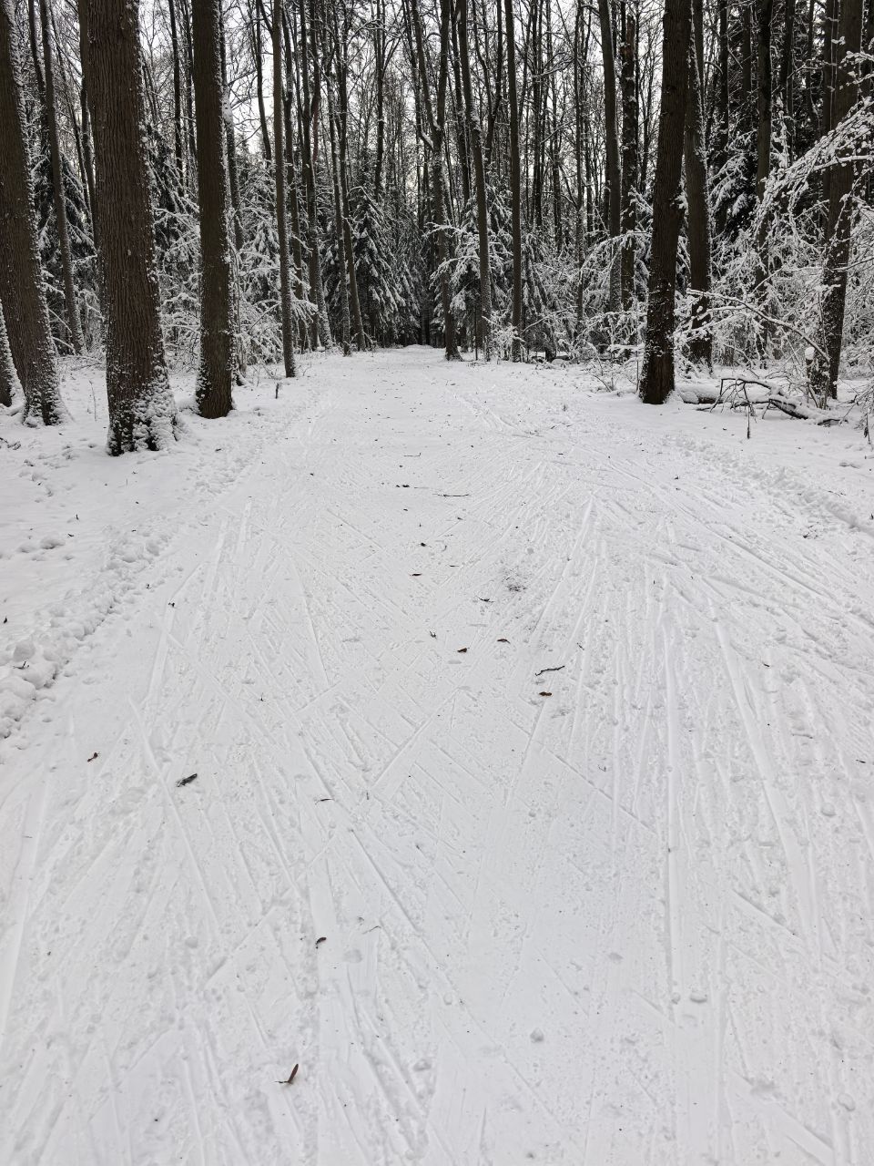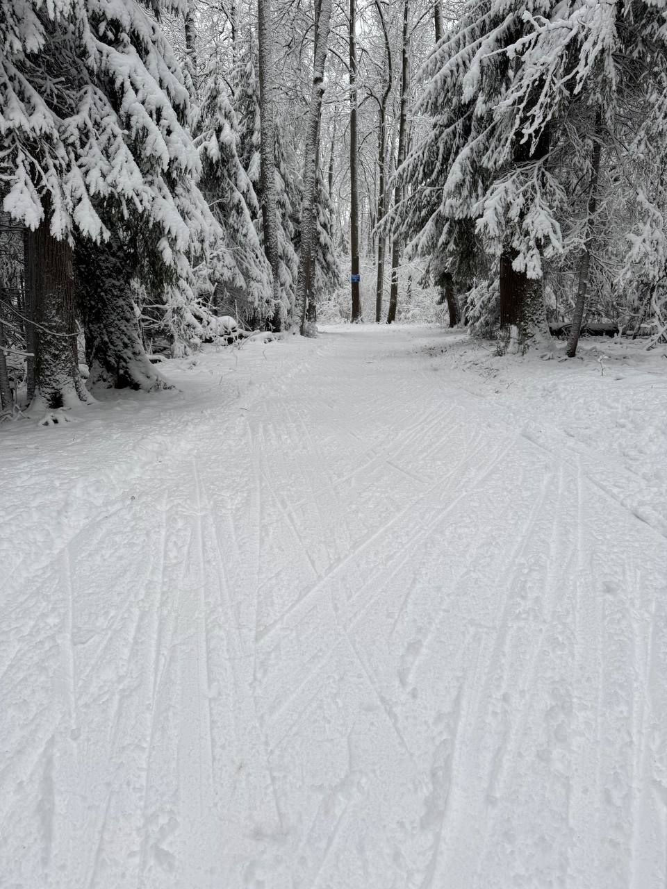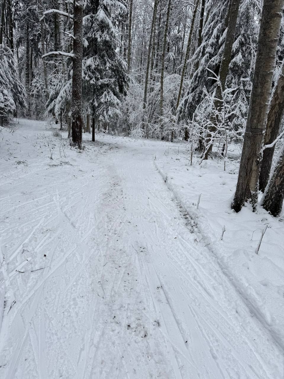 Состояние трассы на 10.00 28.12.25. Круг 17 км полностью проезжаем. Снега выпало достаточно. Трасса прокатывается волокушей, очень эффективно, практически без поднятия земли (только редкими местами на кочках). Ближайшие 3 км и поля в очень хорошем состоянии. Бугров по минимуму, снега достаточно. Можно на хороших тренировочных лыжах. Качели пока не катают. Дальние петли, где был уложен асфальт - трасса бетон, в идеальном состоянии, можно тренироваться на боевых лыжах. Ближайшие поля в хорошем состоянии, но пока не все, а самые ближние. Дальние петли к СВР только начали укатываться, там еще слишком бугристо, но все проезжаемо. Можно на тренировочных лыжах туда также заезжать. Шлагбаум на выходных открыт, парковка бесплатная. Приезжаем, катаемся в лесной зимней сказке )