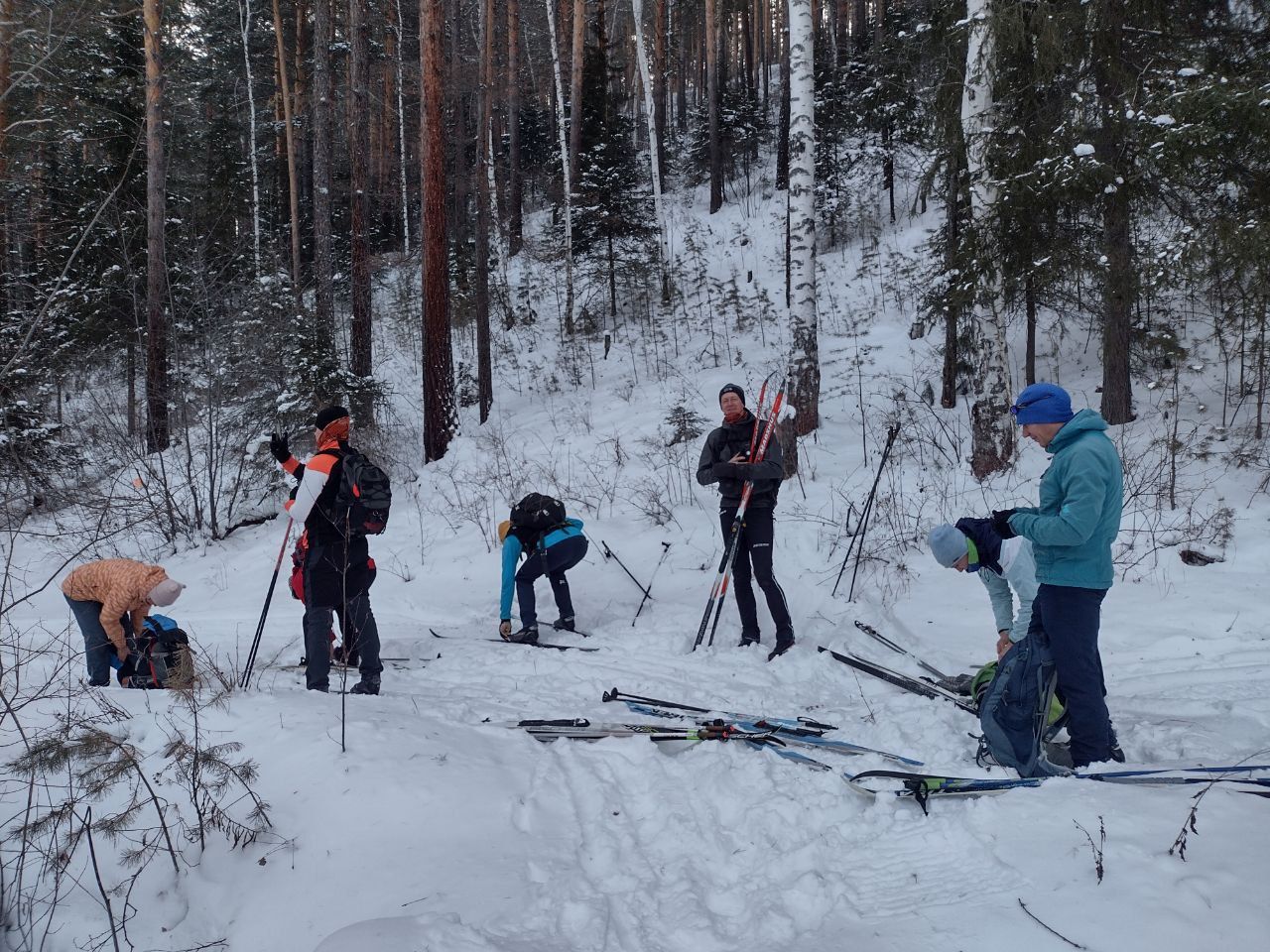 4.охотники встретились на спуске в Большой луг. Пока от них проблем нет. Везде едут в колее и подложку, как и нашу лыжню не угробили. Короче пока мирно сосуществуем.