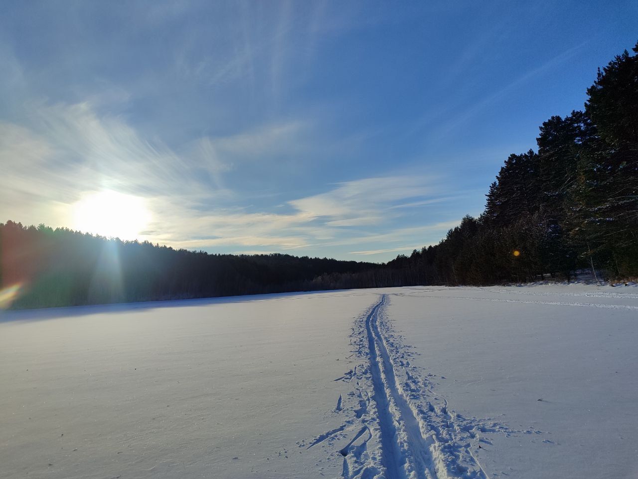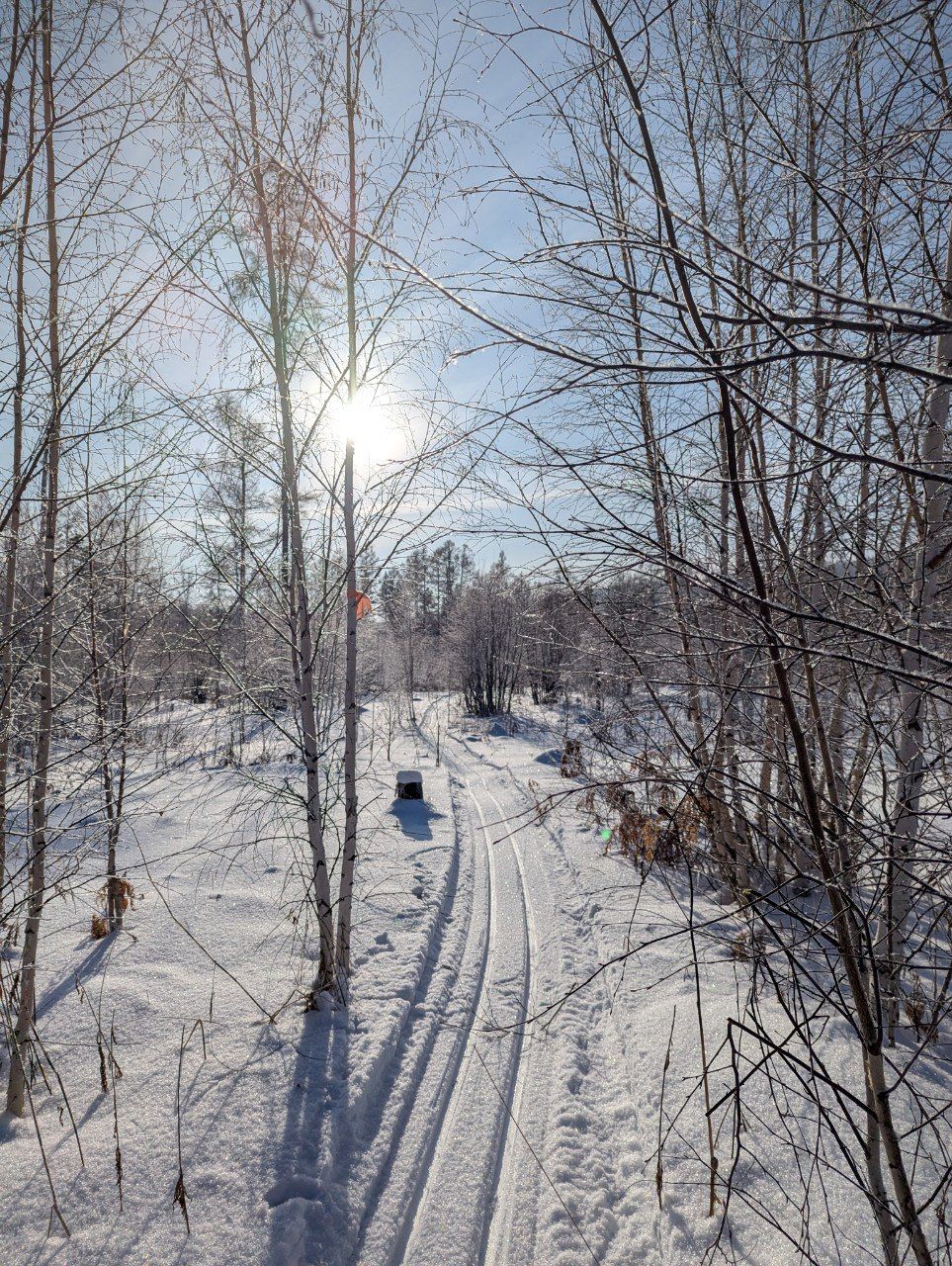 Сегодня погодка была супер -22 и солнце, да снег сыпучий, то что надо для нарезки лыжни. На выходных потеплее будет.😉