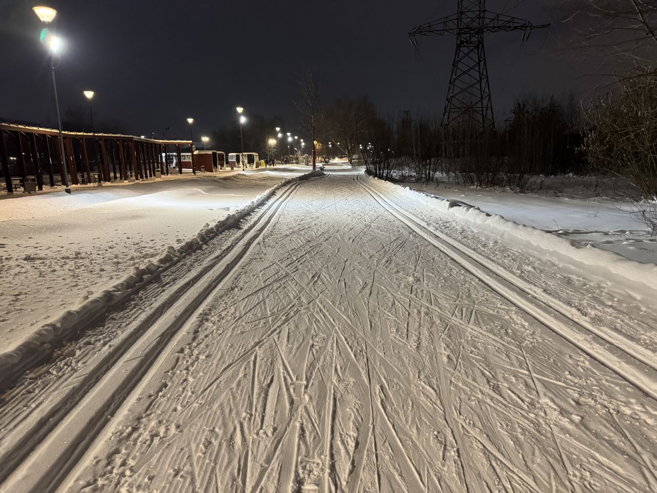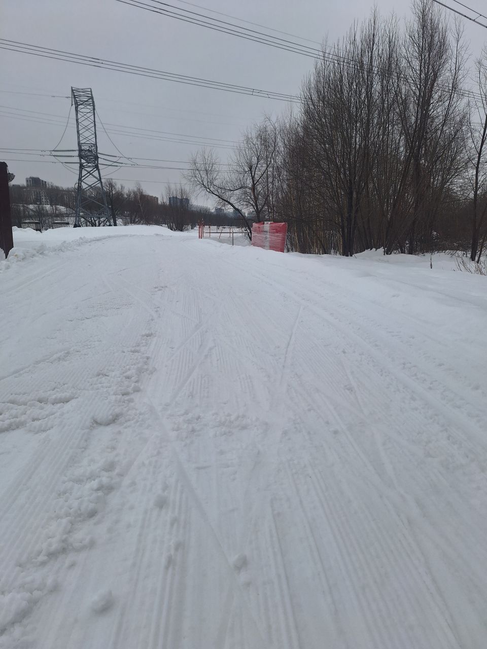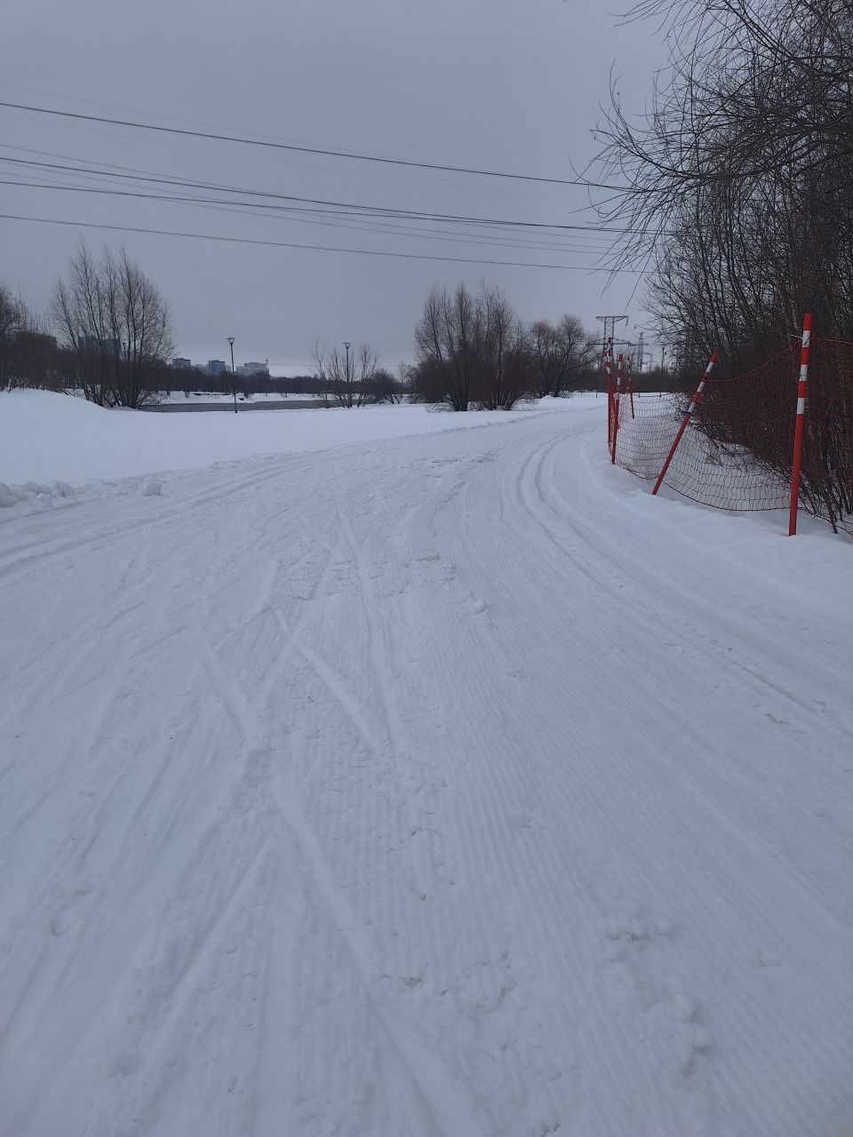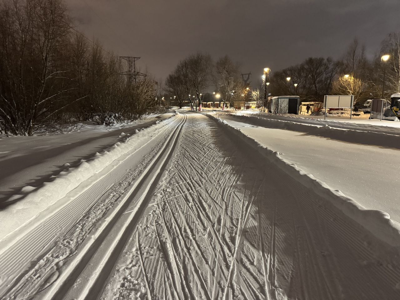 Трасса в отличном состоянии на всех участках, круг 2,4 км +-, встретил в это время человек 5. Видно, что на днях (сегодня или вчера) привели в порядок после снегопадов, но как будто трасса местами стала уже, чем изначально перед Новым годом.