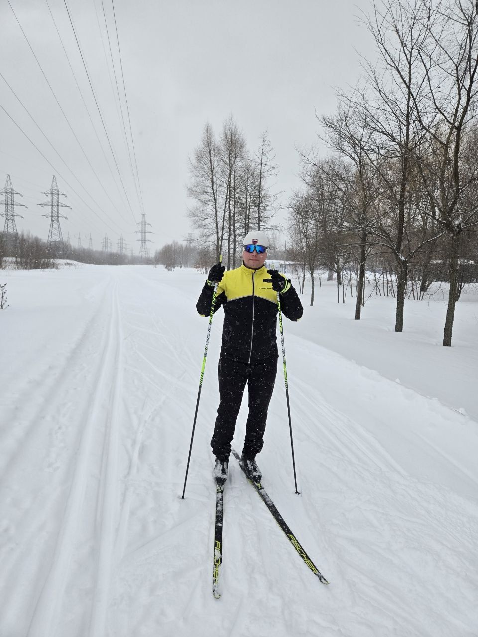 Катались сегодня с 14 до 15. Если очень хочется, то и снегопад не помеха. На удивление, скольжение было хорошим. Отлично потренировались.