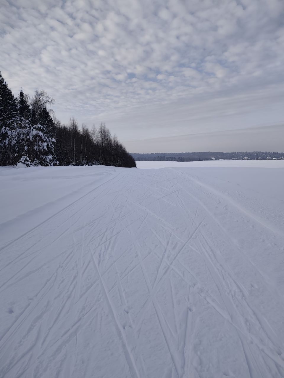 6 января . Кусок возле лес нормальный вся остальная трасса опасна для скользяка лыж , много камней и песка . Лучше в Гигирево или еще куда нибудь пока машинист ратрака не вернулся из отпуска )