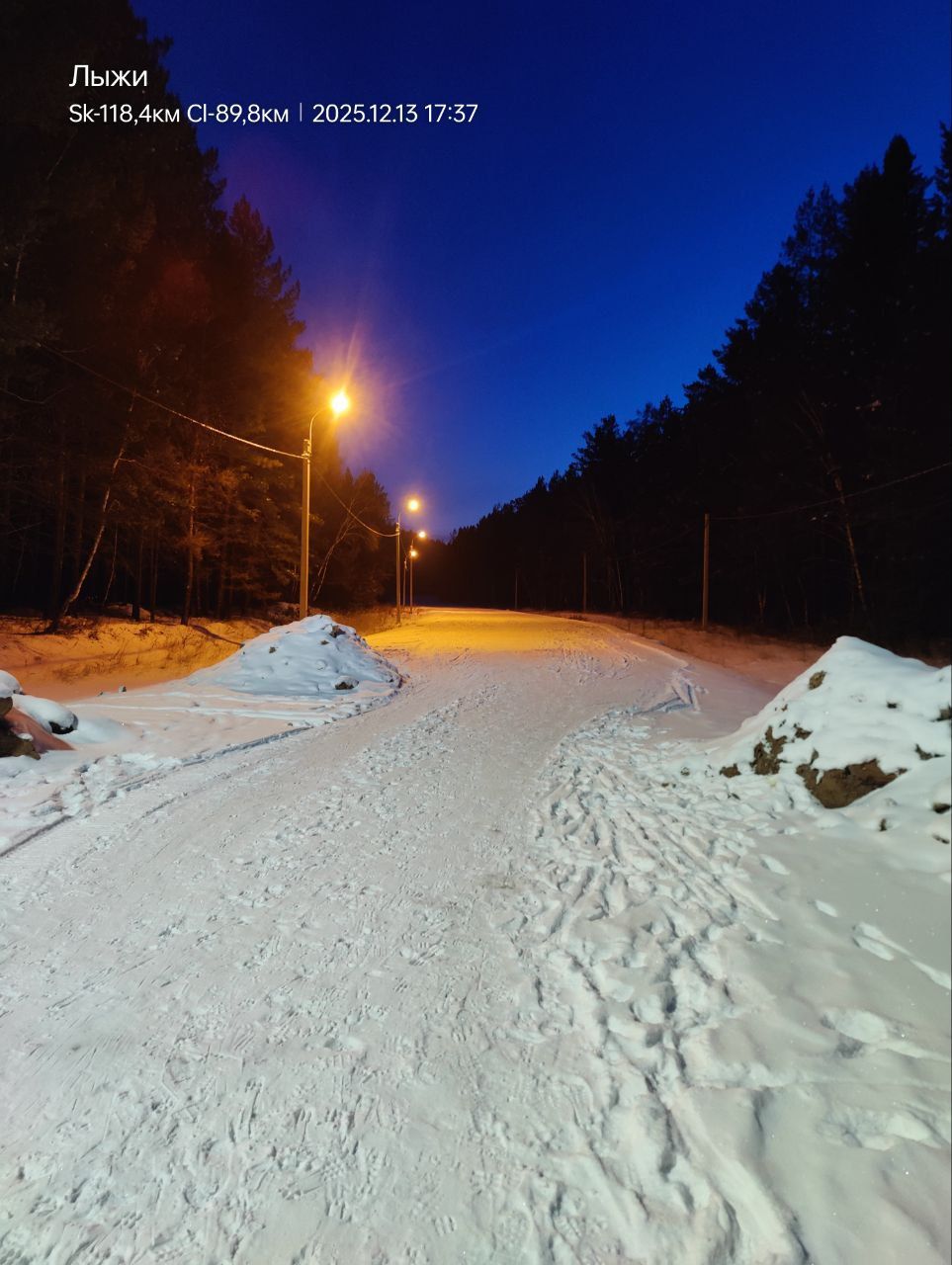 Обратная дорога — сплошное наслаждение: катишь вниз, сил почти не тратишь. Снег в лыжне приятно поблёскивал — то ли от далёких фонарей, то ли от звёзд, казалось, даже светлее стало. В итоге накрутил 17 км. Круг для классики — просто сказка. Ухоженный, точёный. Рекомендую!