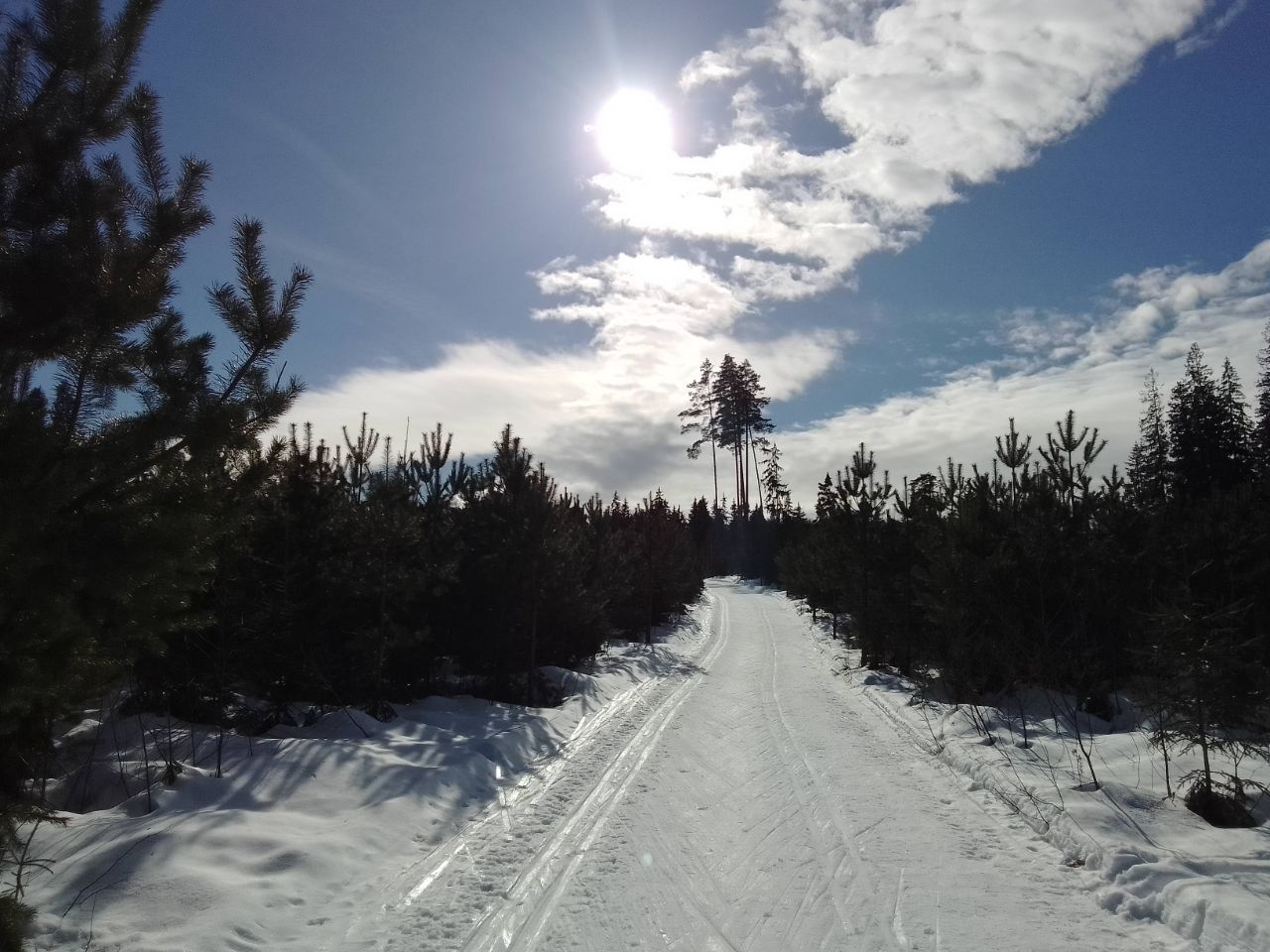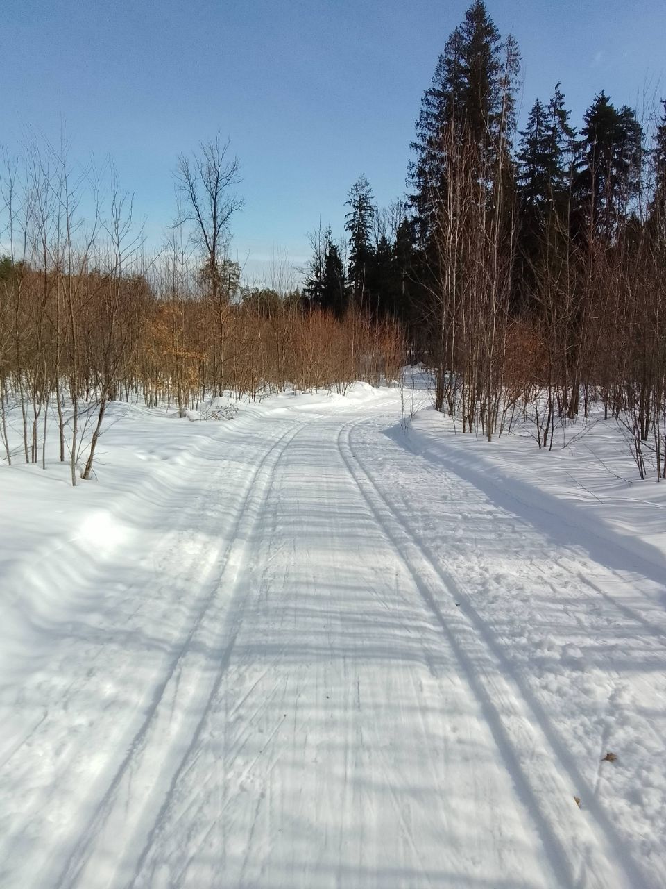 В соседнем Гришкино мне понравилось больше - там вся основная трасса 7,5 км расчищена от завалов и веток, вчера также готовилось, поэтому обледенелости почти не было. Общая протяжённость подготовленных трасс со срезками в Гришкино около 8 км.