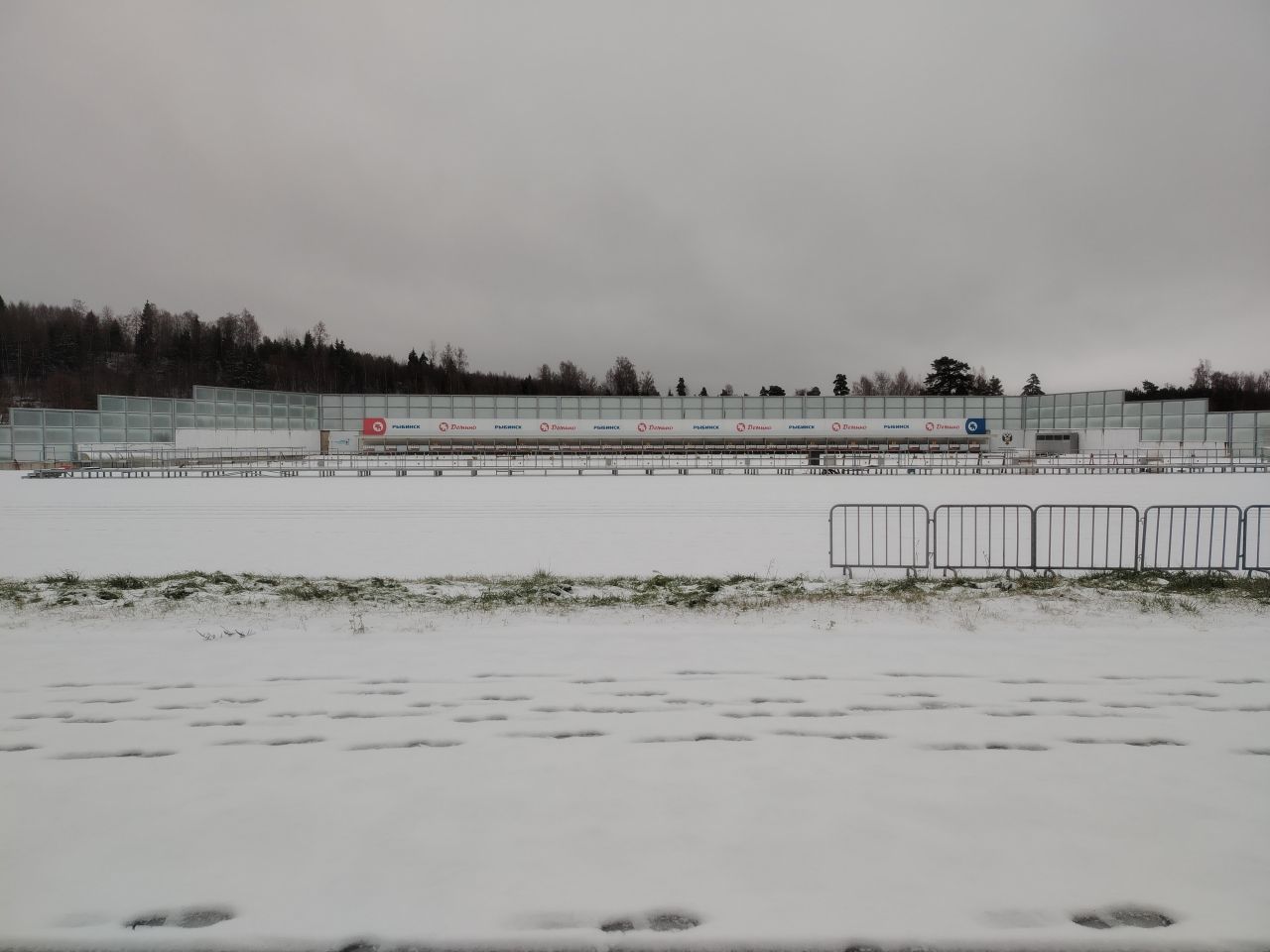 На трассе марафона лыжня идеальная, погода зимняя, снег белый. Очень порадовался :-) На подъемах даже каша была.