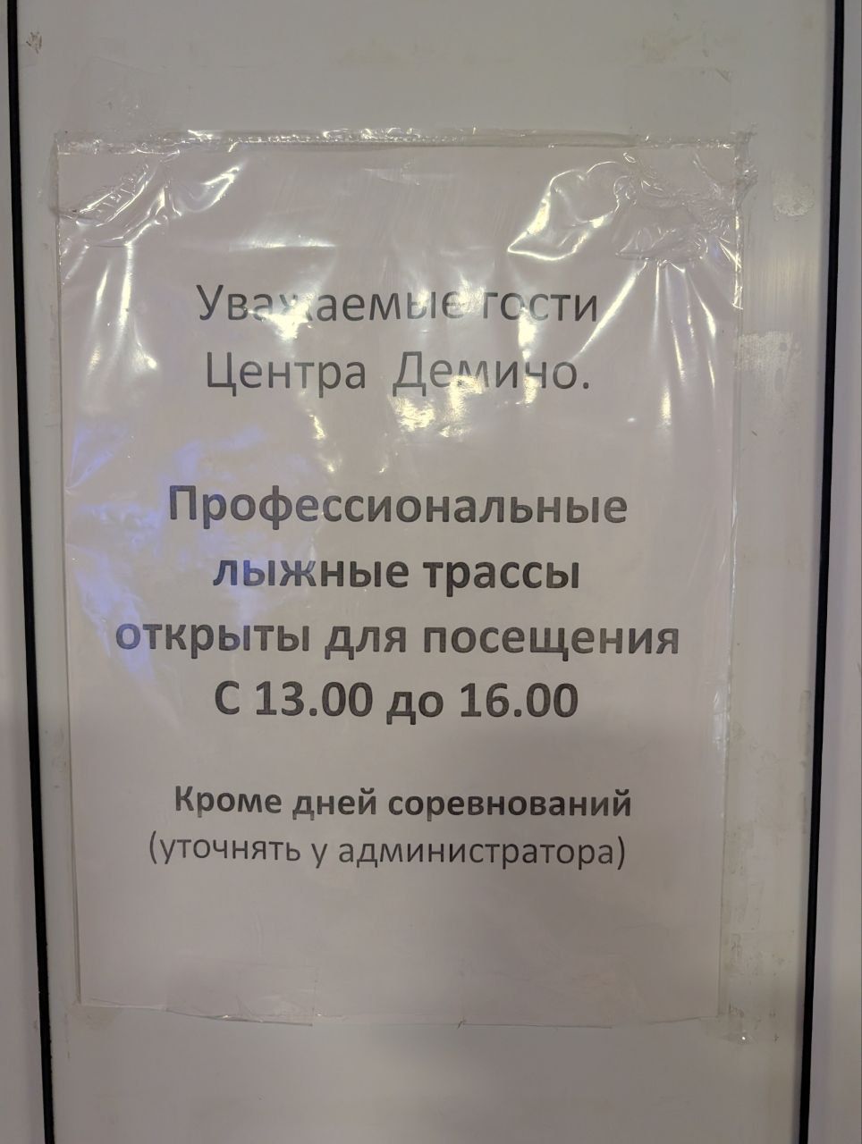 Для обычных людей трасса работает с 13 до 16. В прокате можно переодеться и оставить вещи в ячейке за 100 рублей. Оплата лыжни по пиаркоду 300 рублей с лыжника. Въезд на автомобиле 100 рублей