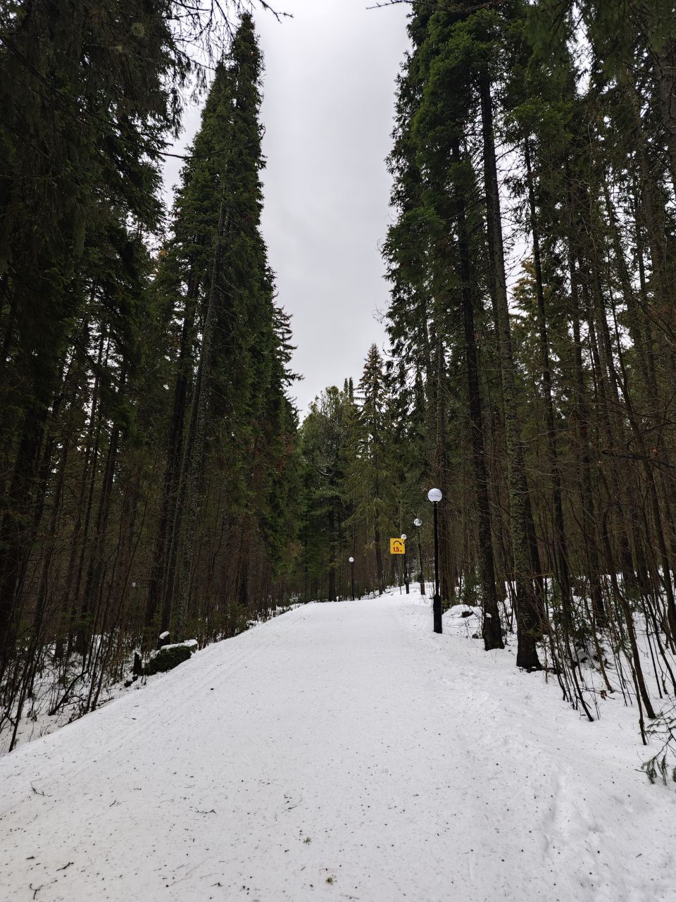 Здесь есть и вторая трасса, там тоже был снег, она как раз ближе к олимпийской гостинице. Но она и прогулочная для жителей, так что могут быть помехи, но для разнообразия сойдёт.