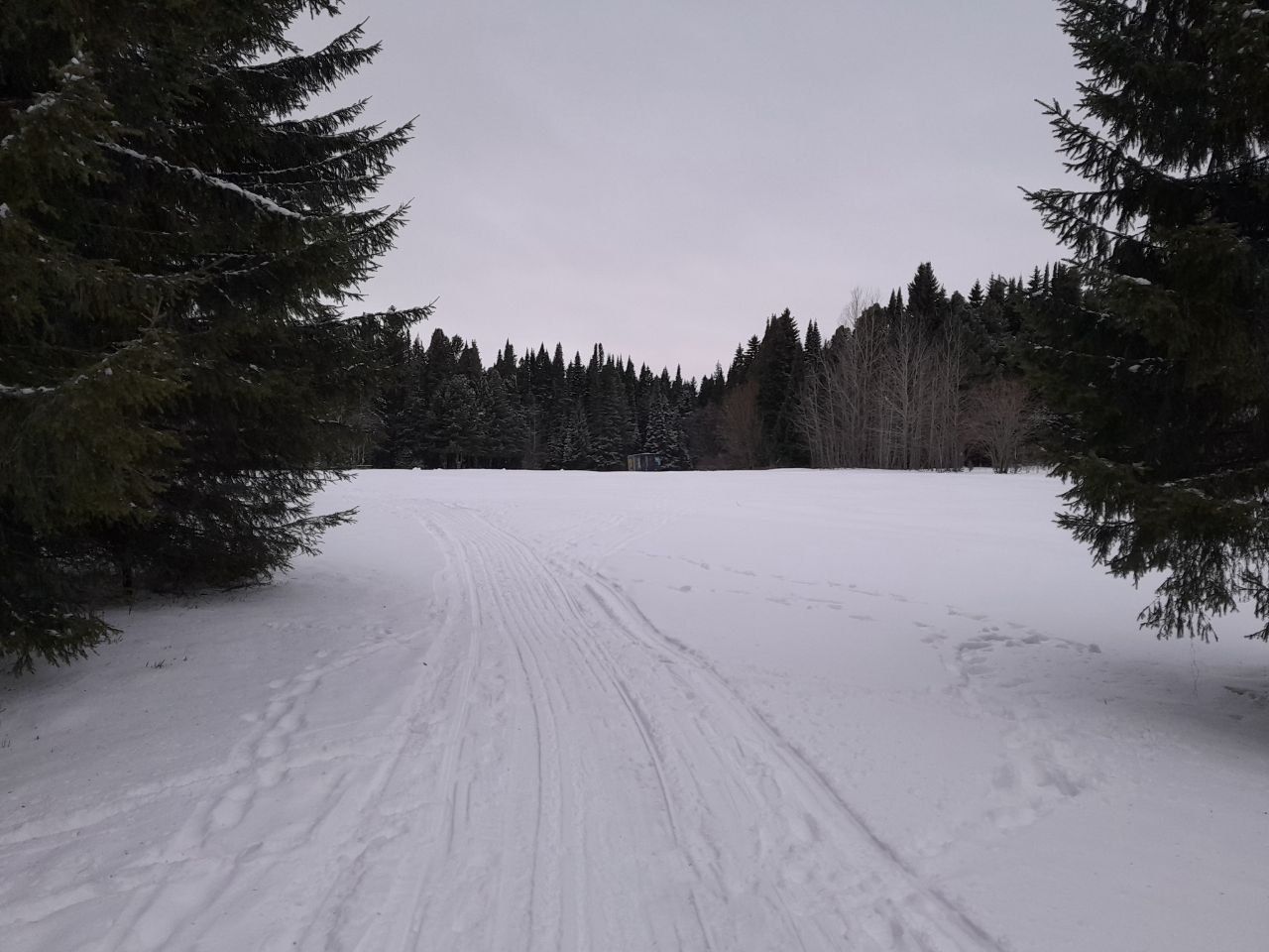 На остальной части трассы по-разному - где-то снегоходы проехали (там рыбаки ездят от города на Иртыш), где-то самотопная лыжня кружок, где-то пешая тропа. За пределами 3-км круга встретился только один лыжник, круг протропил и катался там.