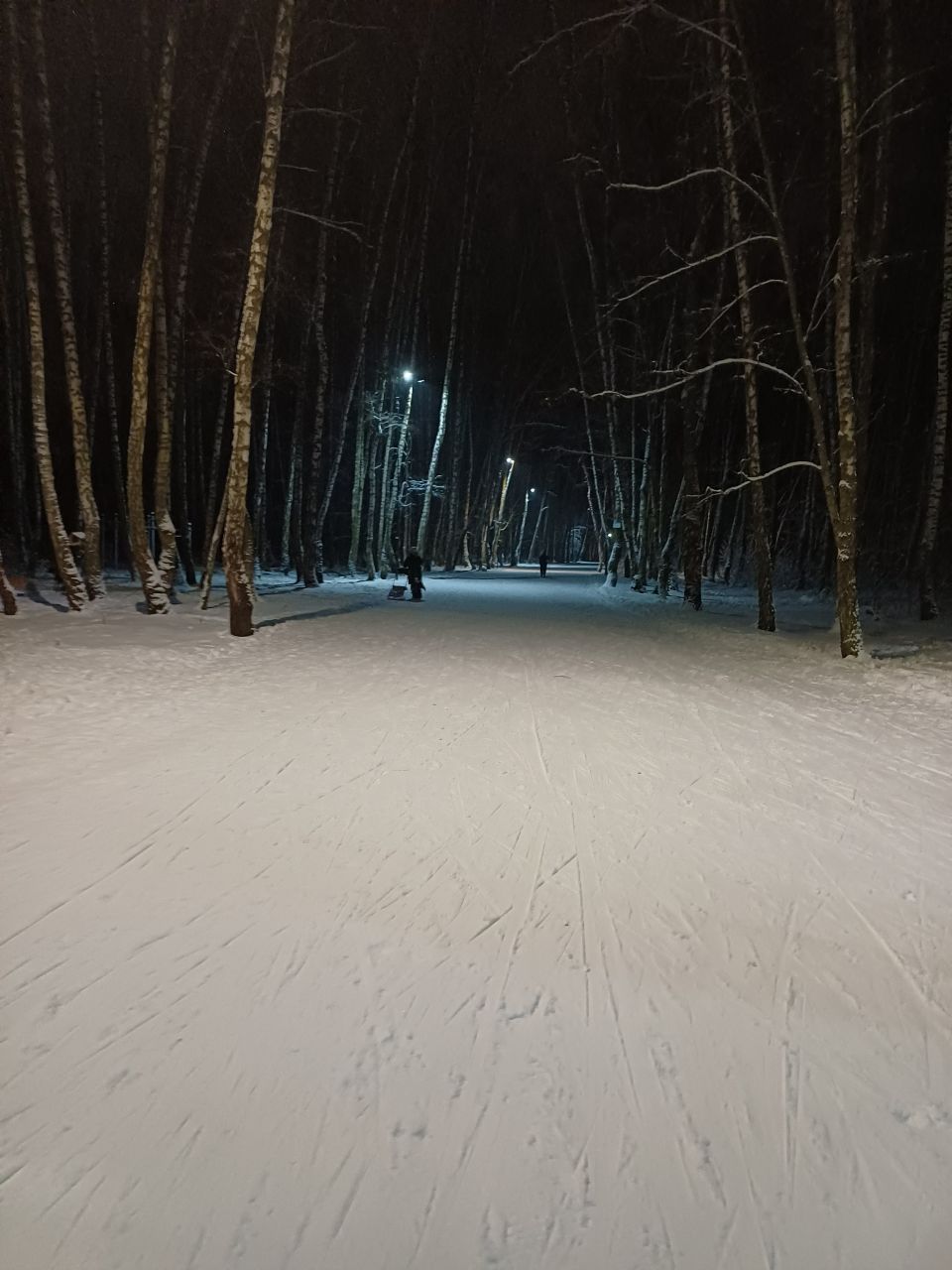 Катали 28.12.2025 вечером. Сделаны шикарные 2 км, конечно пока без спуска на поле. Можно на боевых, отличная трасса, спасибо тем, кто трудится над ней!