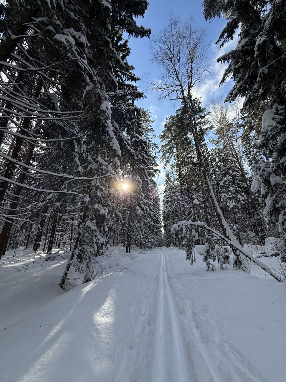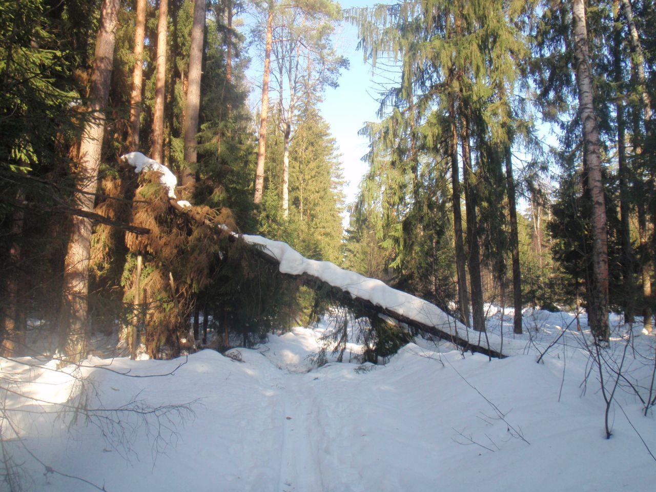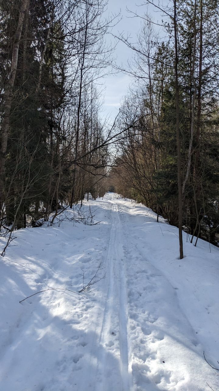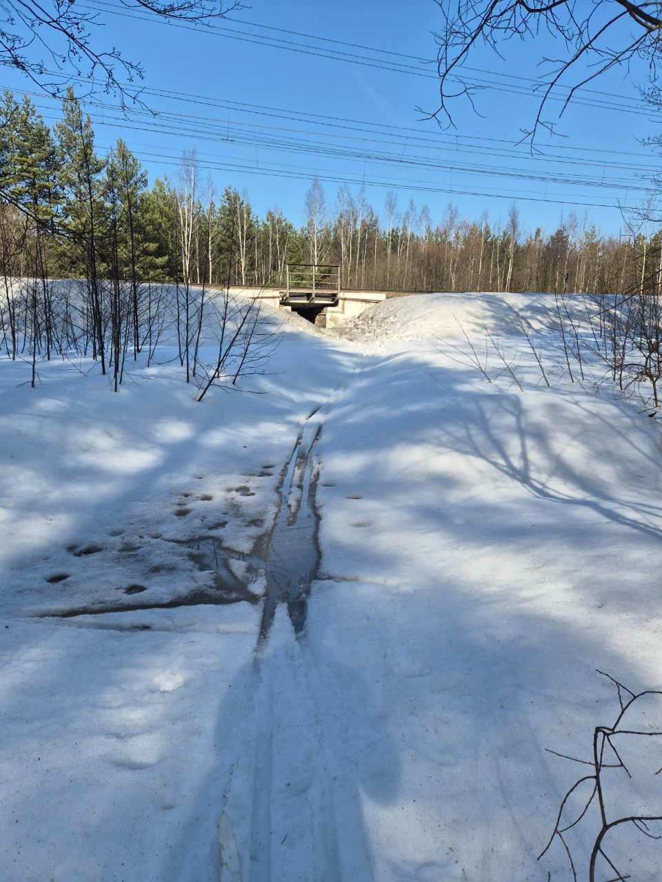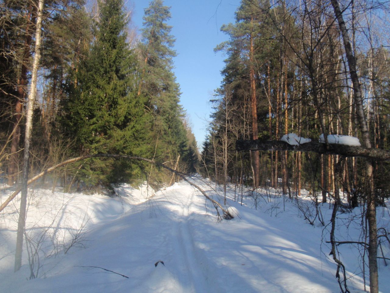 Прошел 13.03.2026 Донинскую просеку полностью, от Поселка имени Воровского (пл.43км) до Есенинской (пл.42км). Впечатления своеобразные. Если кратко, то кажется с севера на юг ее ходят в основном только первые десять километров, прекращая движение у грунтовки обслуживающий многочисленные СНТ, уходя в Донино, или обратно. С юга на север посещают значительно реже, примерно на пятом километре сворачивая влево, на местную "лыжню здоровья". Кусок между этими участками не имеет нормальной плотной основы, а в это время я и лыжных следов там особо не наблюдал. Самый тяжелый участок от железки до шоссе. Там всего несколько сотен метров, но лыжи внезапно проваливаются очень глубоко в наст. Спешиваться там тоже не стоит, так как под снегом натопило воды, да и просто тяжело передвигаться без лыж. И шоссе, и железку стоит проходить снимая лыжи - движение интенсивное. Первые километры и больше на открытых участках по лыжне ботинок чиркал оплывшые от солнца борта лыжни и проще было двигаться рядом, параллельно, где это возможно. Не исключаю, что это моя личная проблема, так как я обладатель утеплённых ботинок 48 размера. Если бы не это, то первые 10 км скольжение было бы хорошим, так как опад хоть и есть, но пока его не много. После ЖД путей и шоссе некоторое время основа жиденькая, но потом становится лучше. А вот лыжня там менее выражена, встречаются следы лосей и людей. Спилил по ходу движения два еловых шлагбаума, слишком низко нависающих над лыжней. После окончания трека прошел на лыжах по поселку до Раменского шоссе. Но скоро этот трюк не удастся, асфальтовые проталины уже в наличии. На 18 км с перерывами на пропил у меня ушло 5 часов. Чисто в движении судя по страве был часа 4.