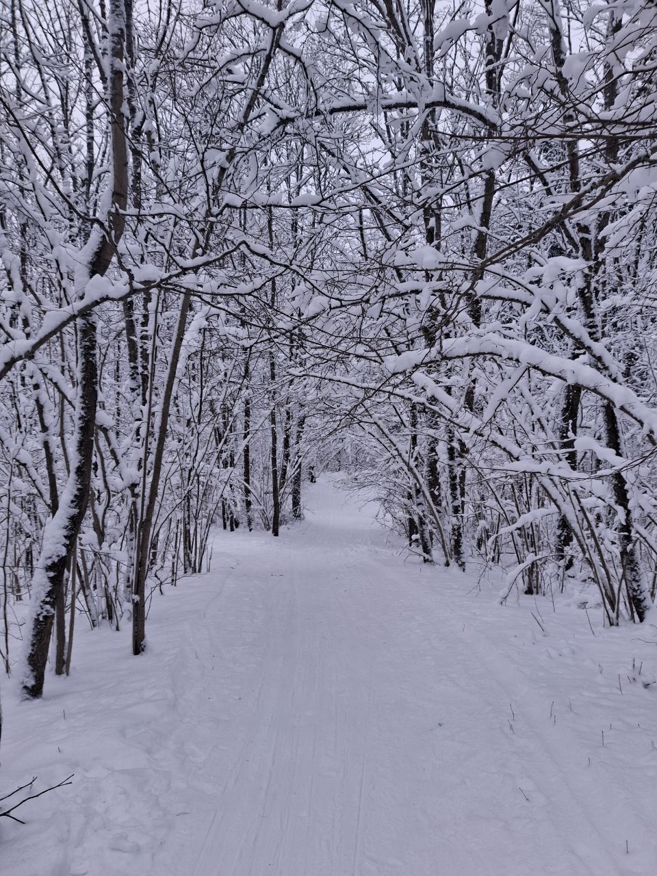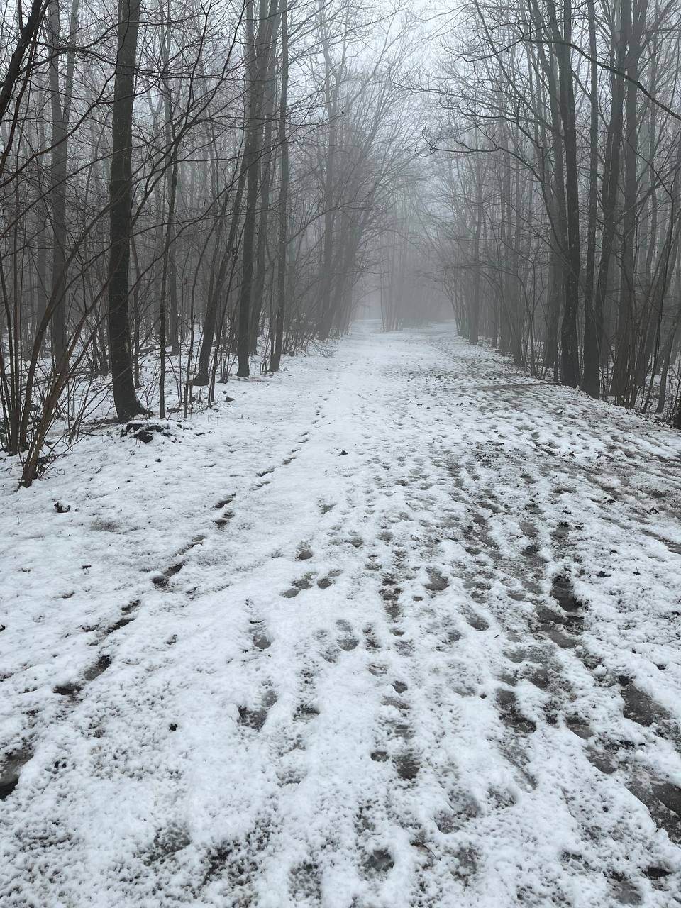 Сама лыжня плотная, бугристая, смотреть под ноги обязательно.