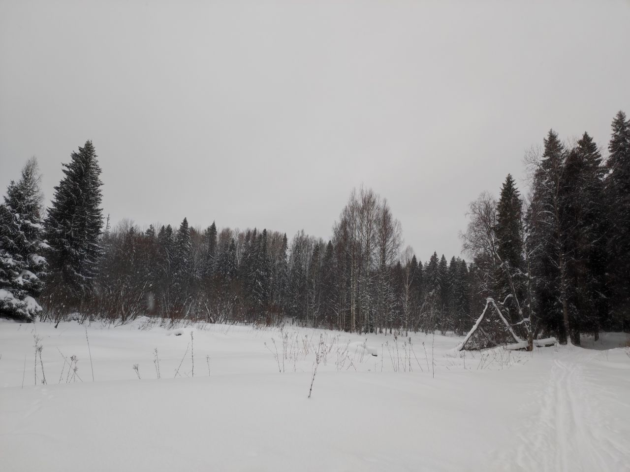 Лыжная трасса регулярно готовится снегоходом с прицепным устройством под конек и классику.