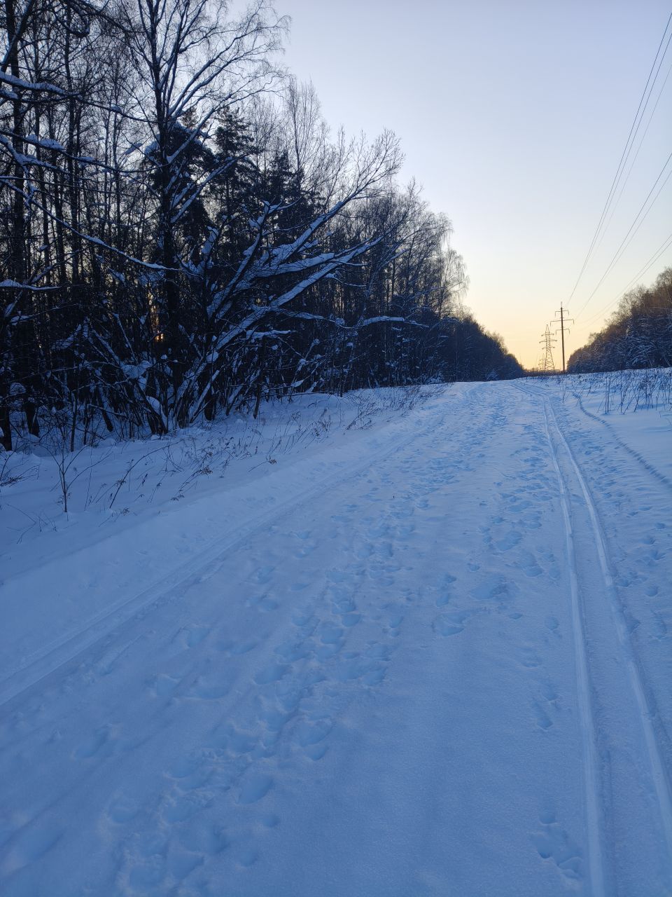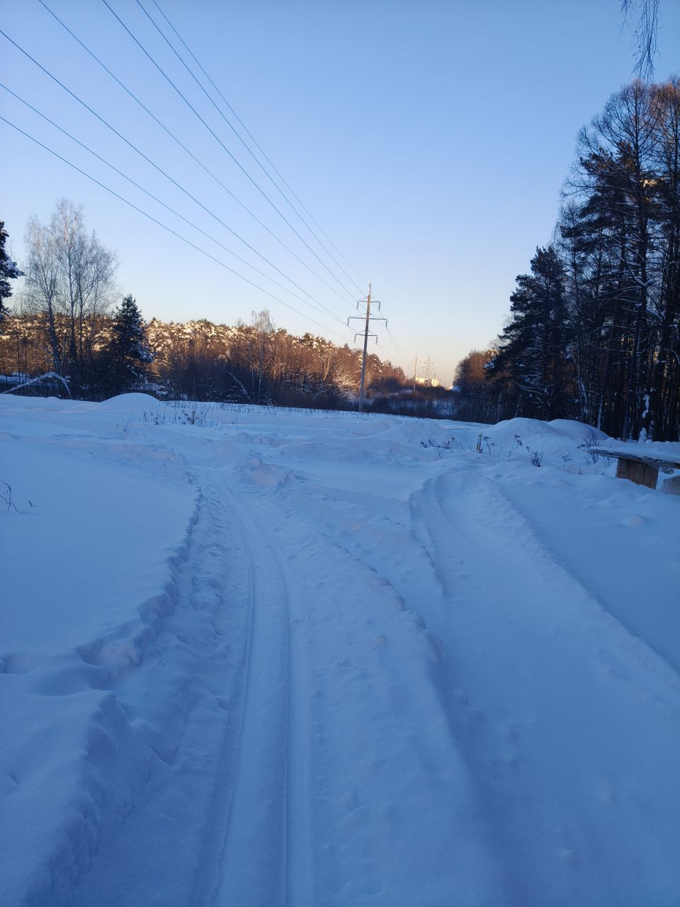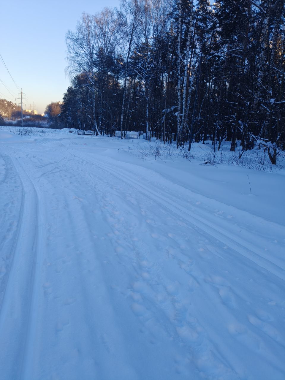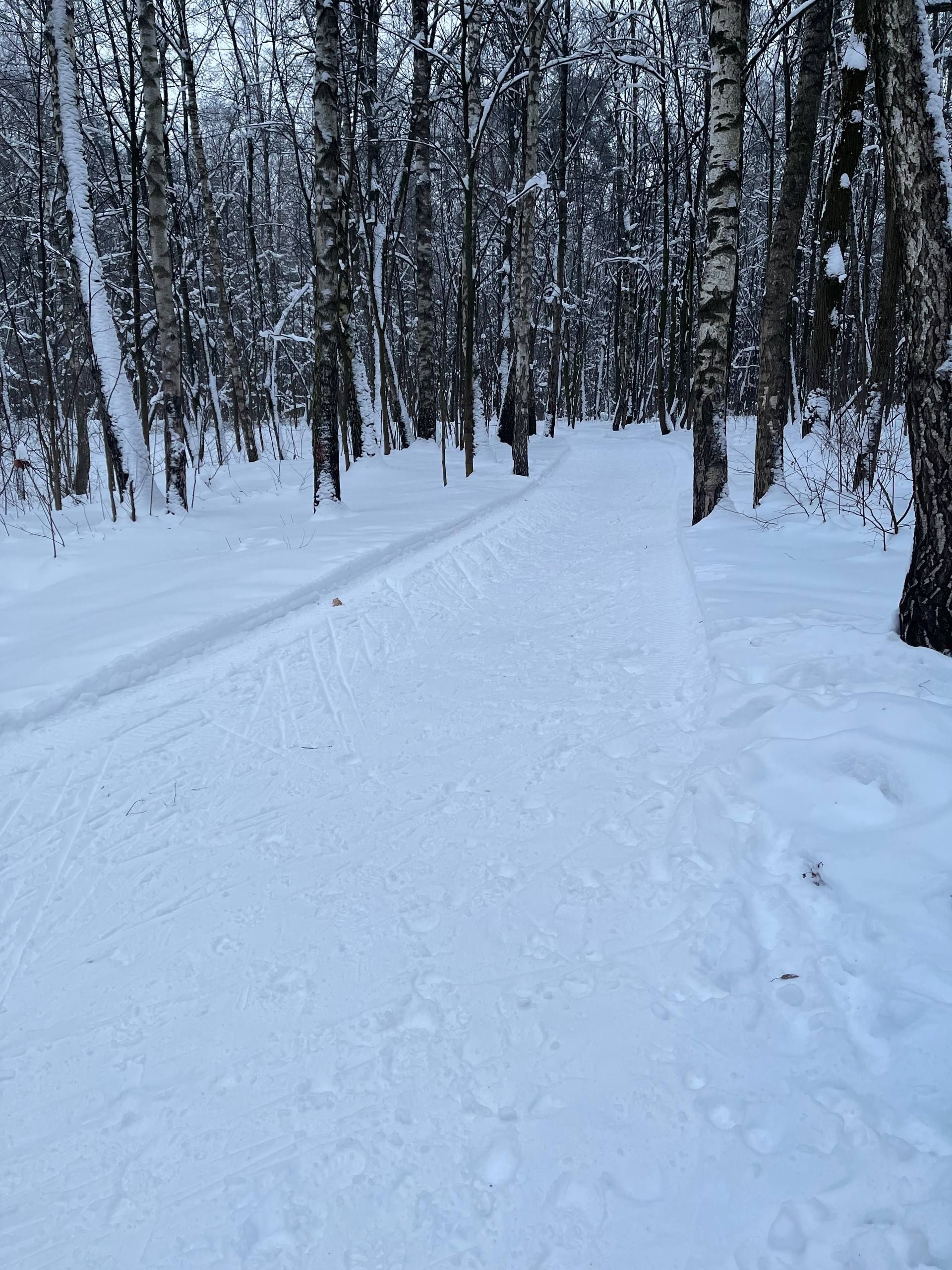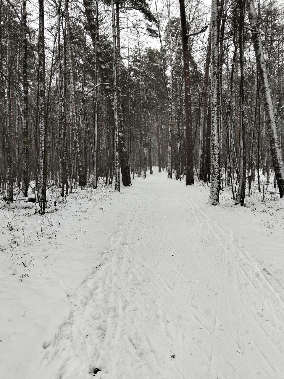 Снега много, в лесу красиво, только трассы не хватает. Но можно даблом по тропинкам проехать круг примерно четыре с половиной км. Поможет меньше грустить о снеге в бесснежный период