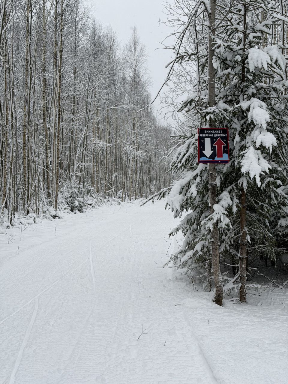 Готов весь круг 9,5 км. Пока весьма неровно, но плотно, лыжи нигде не проваливаются. Снег мокрый, тугой. Энергетика у этого места потрясающая, хочется приезжать снова и снова