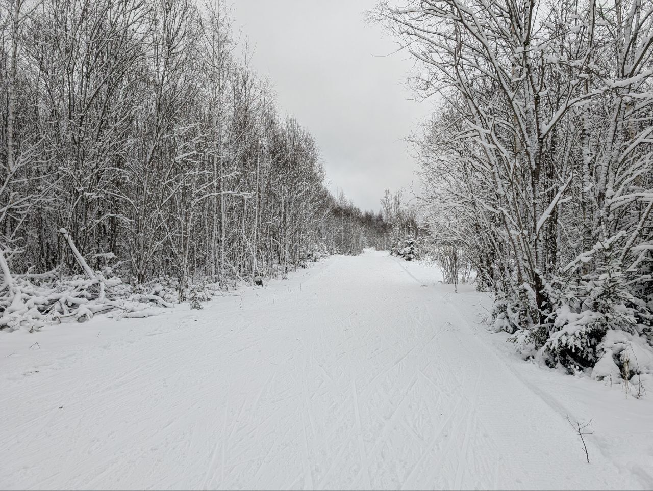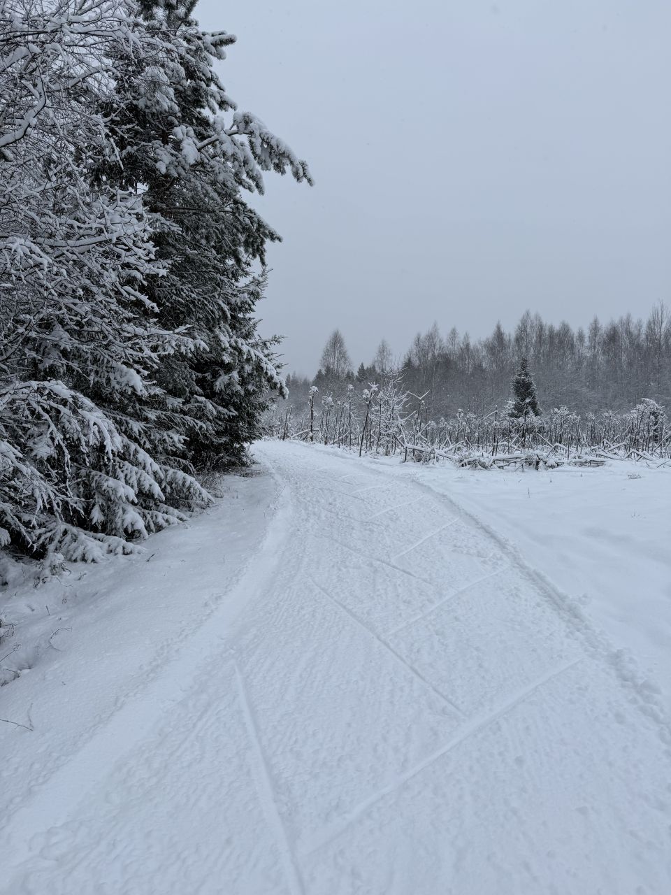 Снег не держит лыжи. По лесу кататься можно. А в поле- только тем кто готов падать. Так и не смог без падений преодолеть тот опасный спуск. сбавить скорость там не получается, а на скорости страшновато- есть проталины до земли. Немного ещё разворотили парковку, за что приношу извинения организаторам. Лучше ставьте авто на обочине. Оленей не видел- жалко.